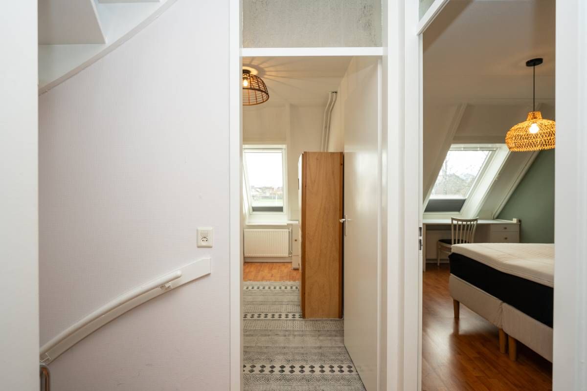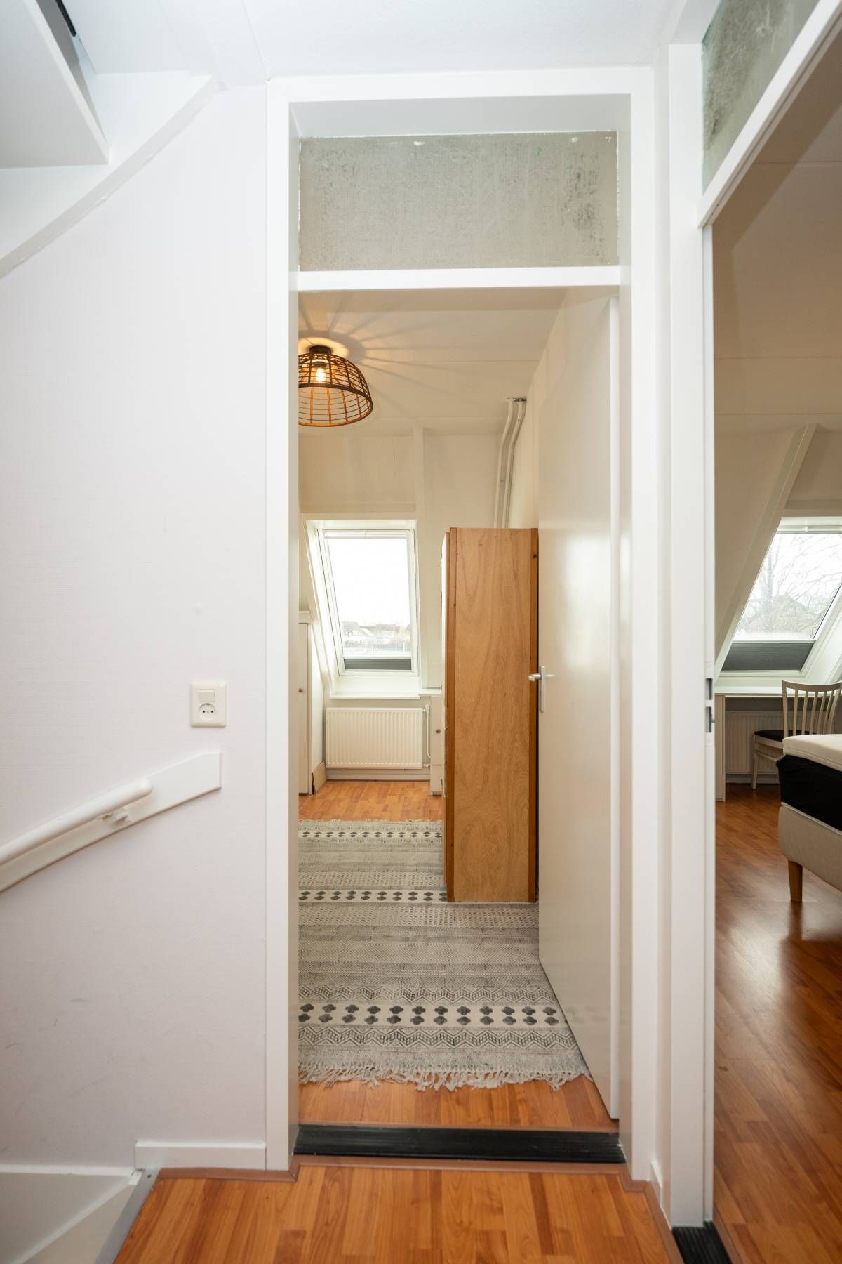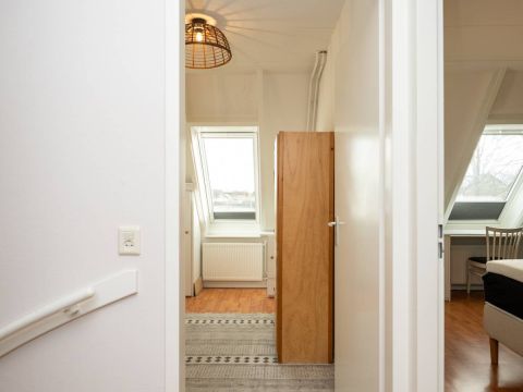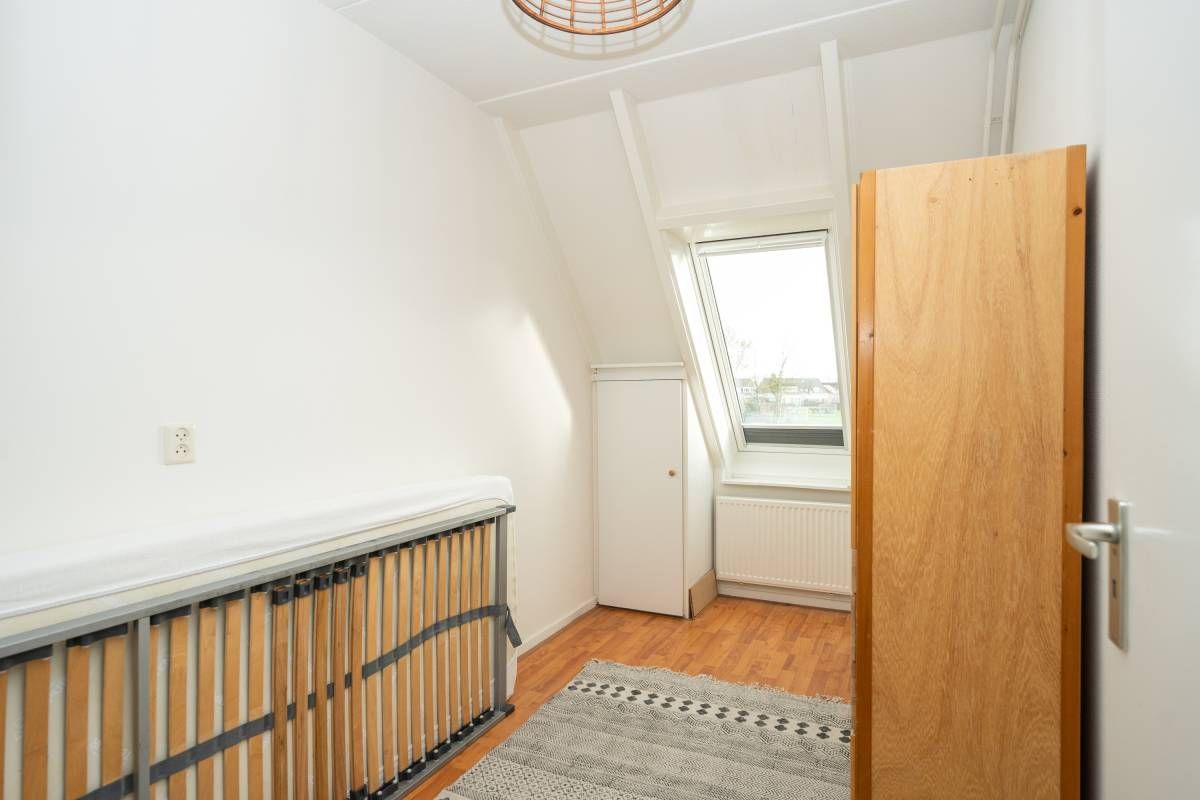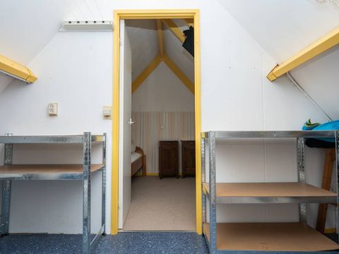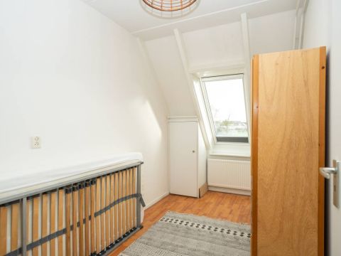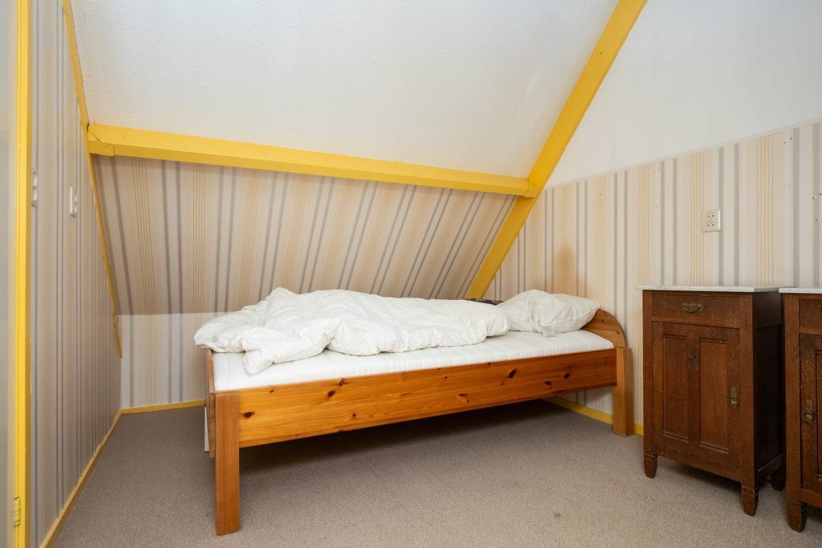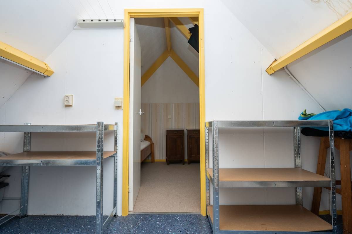 Via een vaste trap is de zolderverdieping bereikbaar. Deze is in tweeën verdeeld en biedt een kleine slaapkamer en opbergruimte.