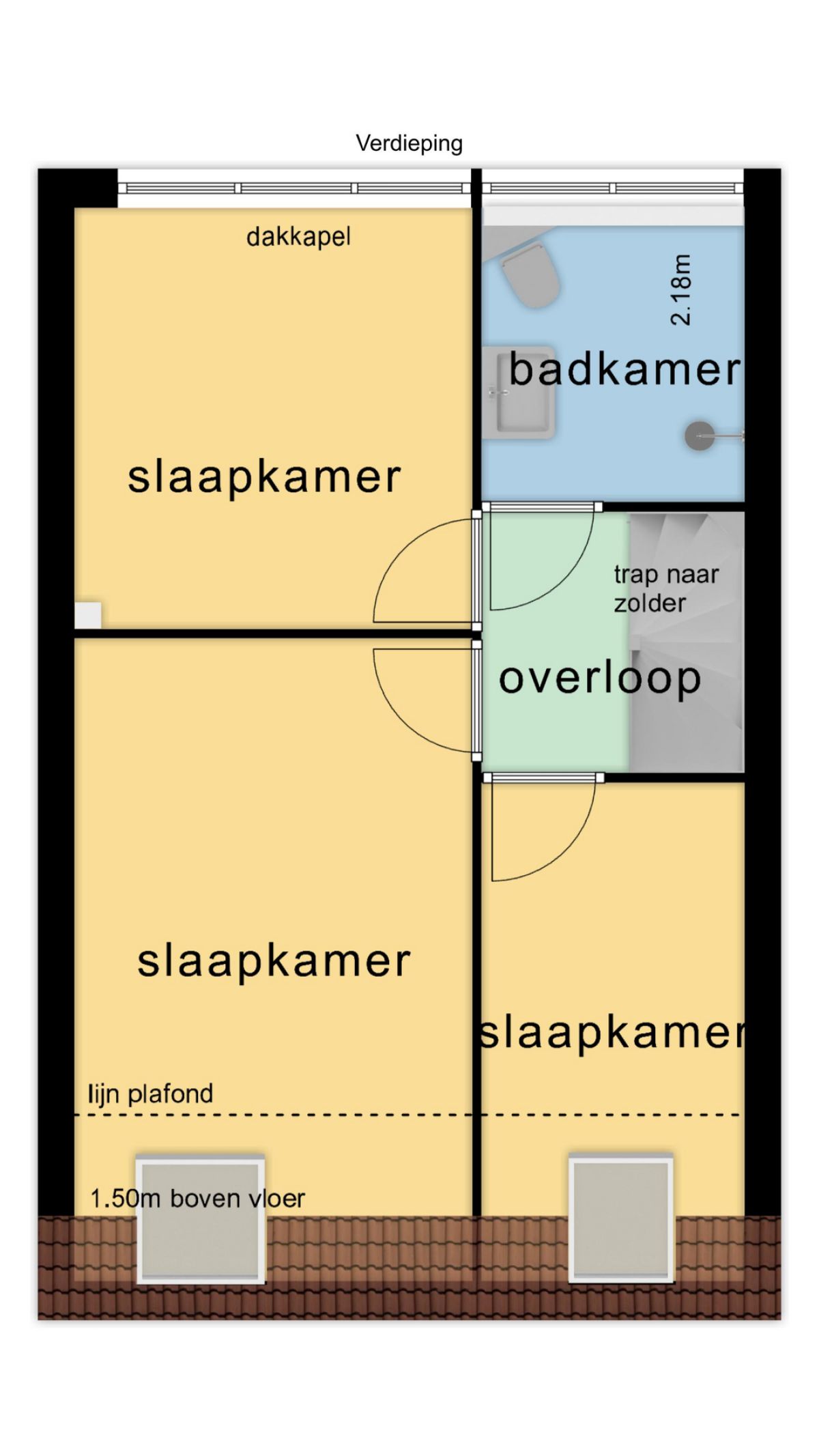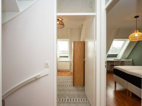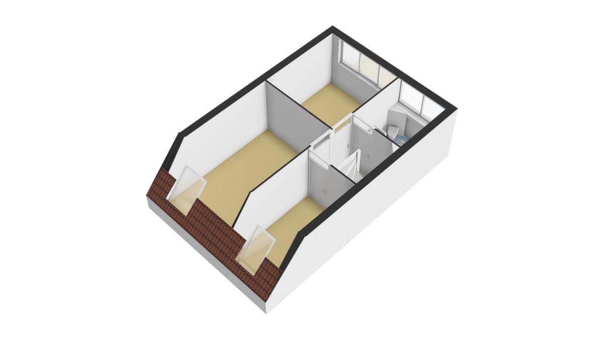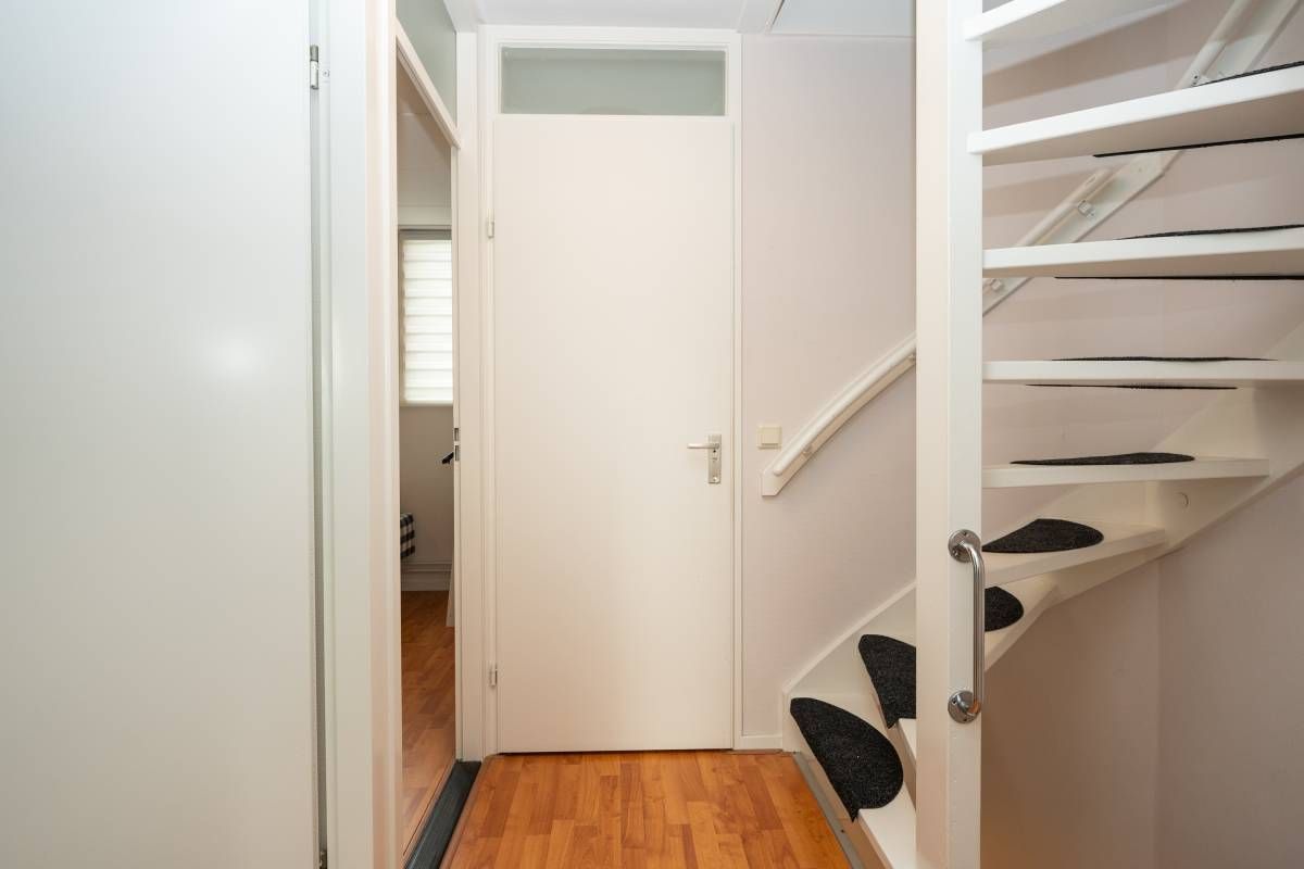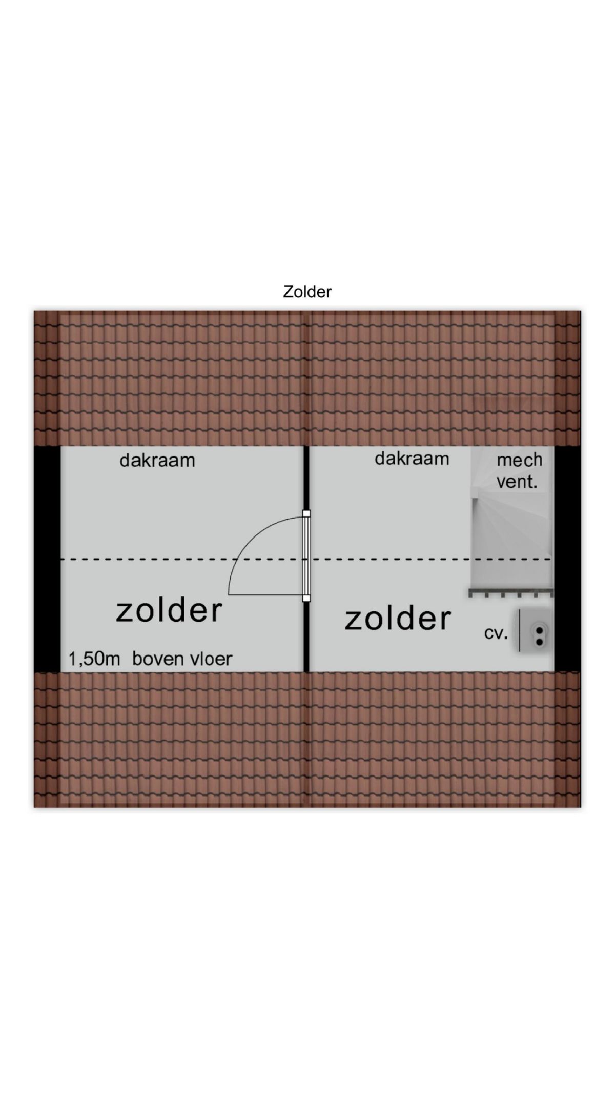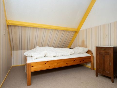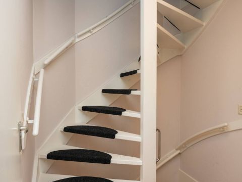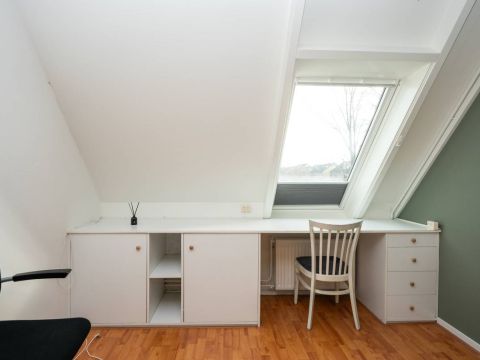 Via een vaste trap is de zolderverdieping bereikbaar. Deze is in tweeën verdeeld en biedt een kleine slaapkamer en opbergruimte.