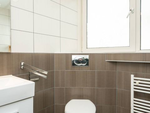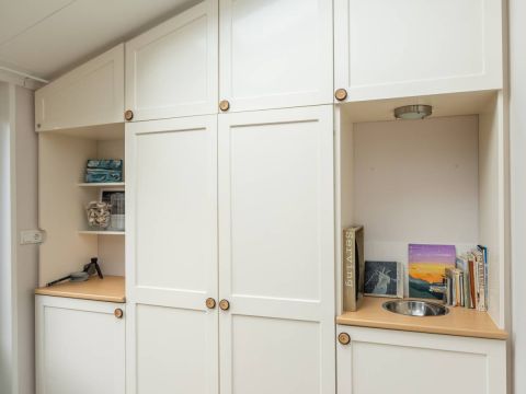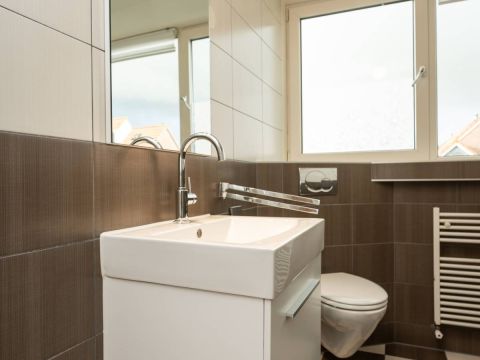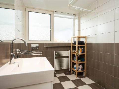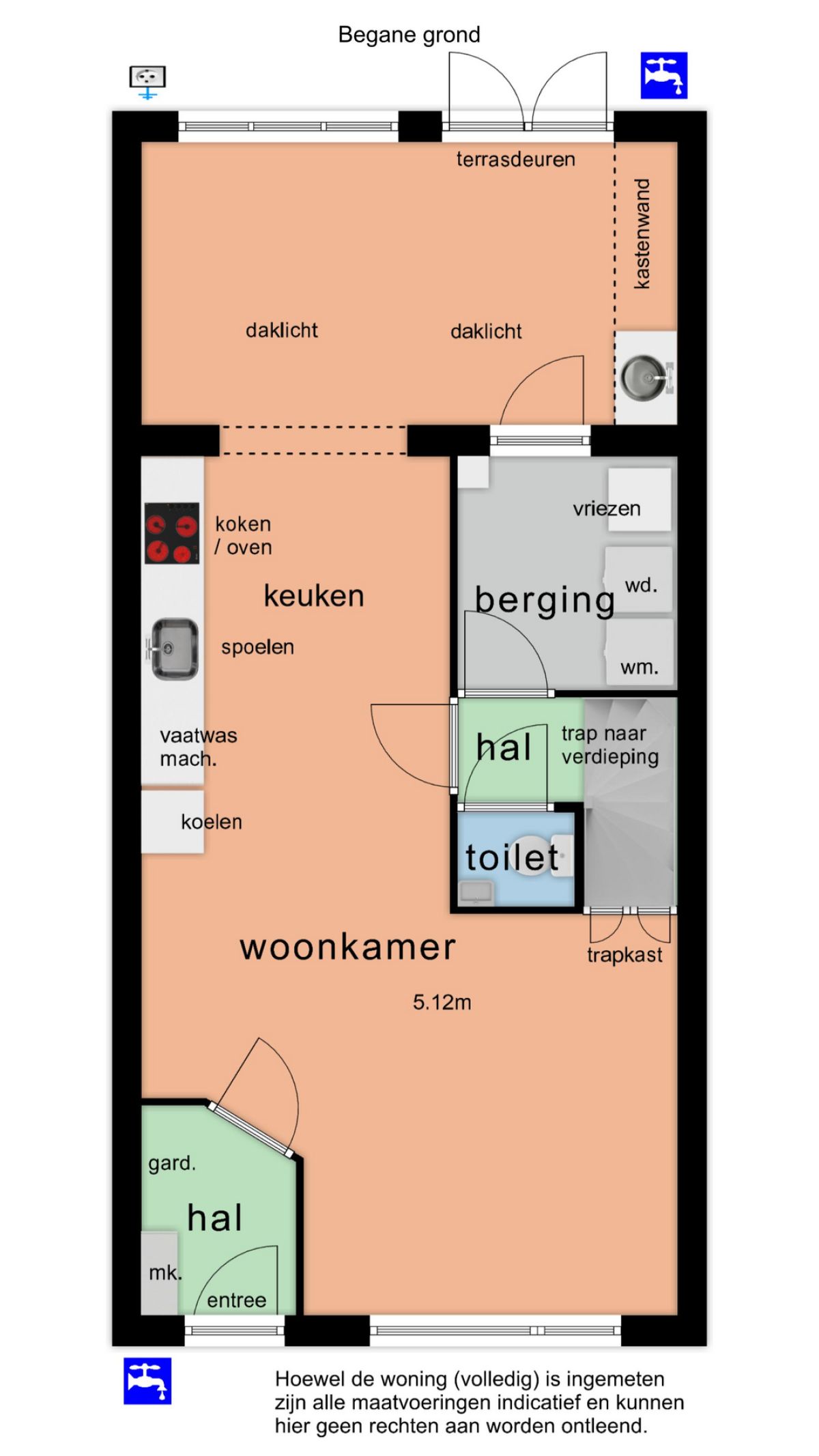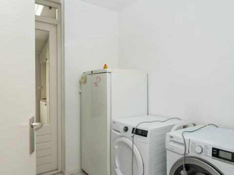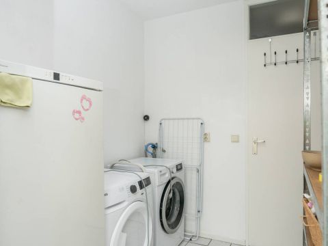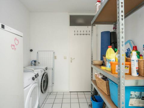De bijkeuken is zowel via de serre als via de binnenhal met trapopgang en toilet bereikbaar. Hier bevindt zich de opstelplaats voor wasmachine en droger.