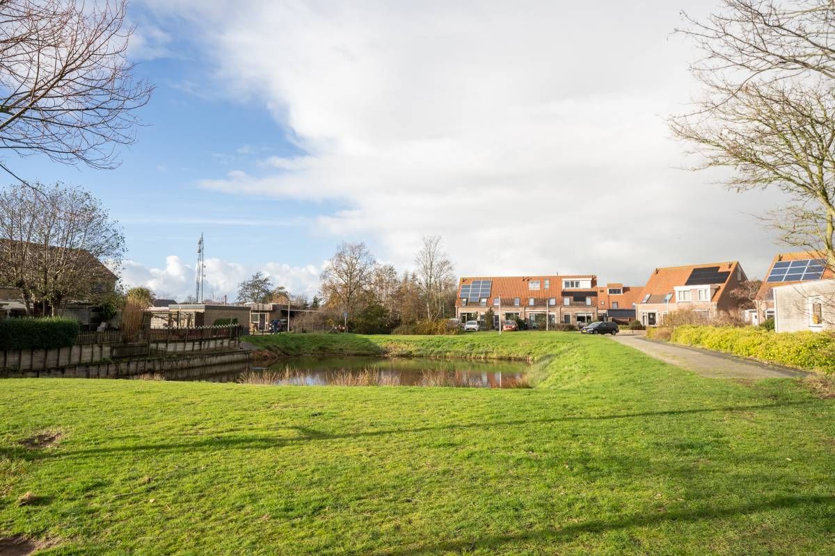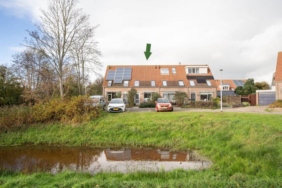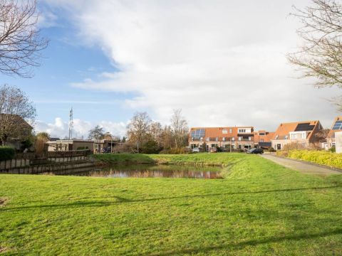 De woning is gelegen in een rustige straat aan een veldje met vijver. Wat een prachtig en vrij uitzicht heeft vanuit de woonkamer.
