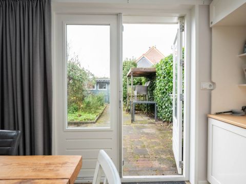 Via de openslaande deuren kom je de tuin, welke deels bestraat is en voorzien van mooie beplanting.