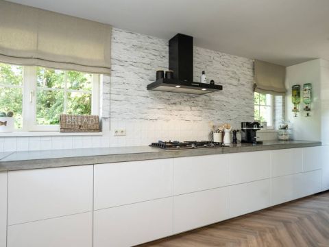 De open keuken is werkelijk een plaatje! Modern en voorzien van hoogwaardige inbouwapparatuur zoals onder andere een gaskookplaat, afzuigkap, vaatwasser, koelkast, Quooker en oven. De Quooker-kraan levert niet alleen direct kokend water, maar ook gefilterd koud en indien gewenst bruisend water. Alles is naadloos geïntegreerd in het design. Ook is er meer dan voldoende kast– en werkruimte.