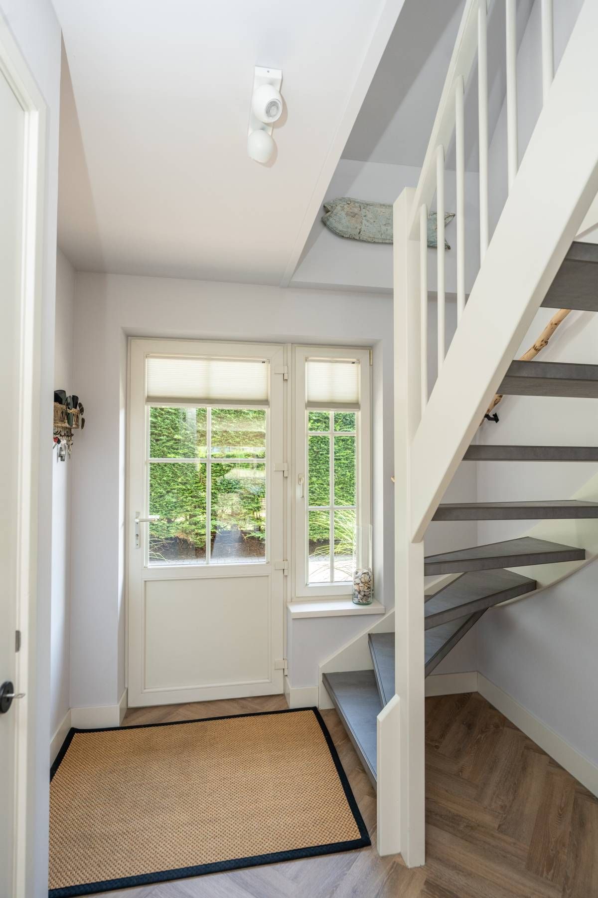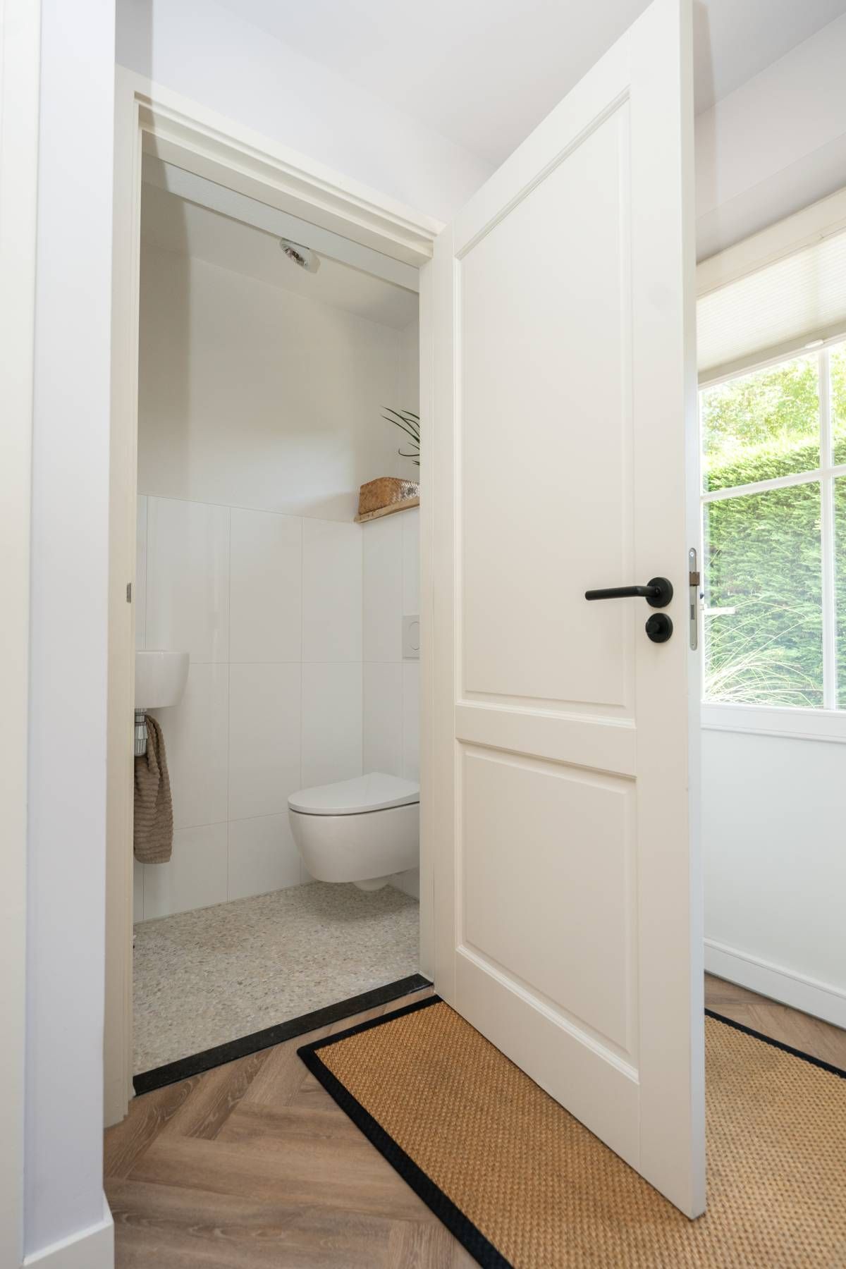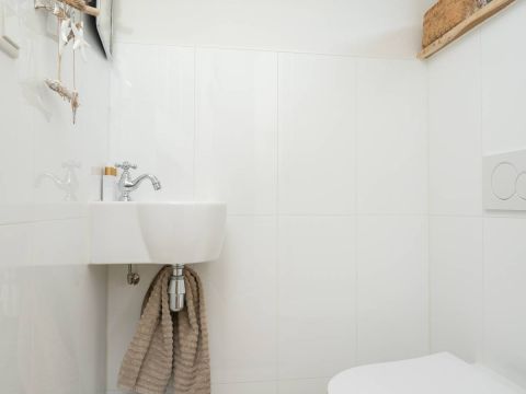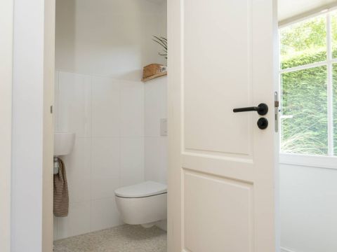 De entree van de woning is verzorgd en stijlvol. In de hal vindt u een modern toilet met een luxe uitstraling, de meterkast en de trapopgang naar boven. Een voorbode van wat deze villa nog meer te bieden heeft.