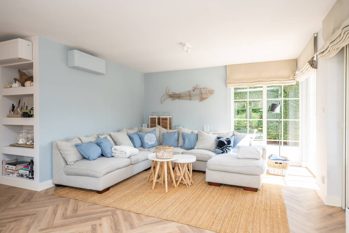 Kom binnen! Via de hal bereikt u de riante en prachtig afgewerkte woonkamer. Wat direct opvalt is de zee aan daglicht die door de grote raampartijen en openslaande tuindeuren naar binnen komt.