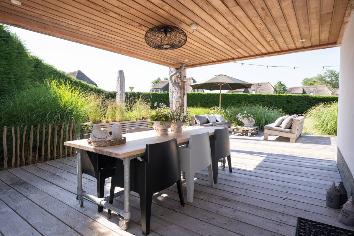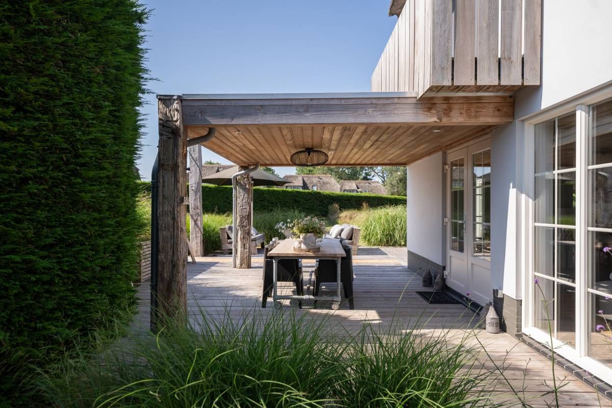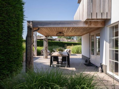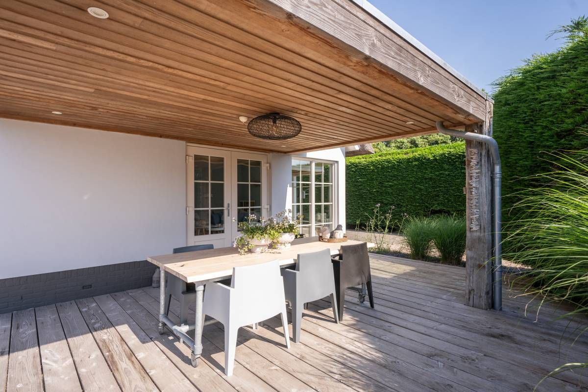 Tuin | Zodra u de woonkamer uitstapt, wordt u overweldigd door de adembenemende tuin. Een oase van rust en stijl. Onder het royale overstek is een heerlijk terras gecreëerd, met ruimte voor een grote buitentafel waar u lang kunt tafelen. Rust & veel groen!