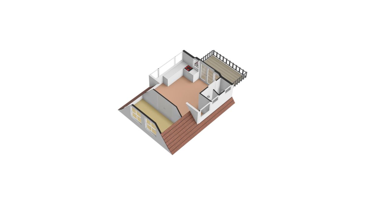 Vanuit de woonkamer komt u via de openslaande deuren op het fantastische dakterras! En met de vlizotrap komt u bij de bergzolder.