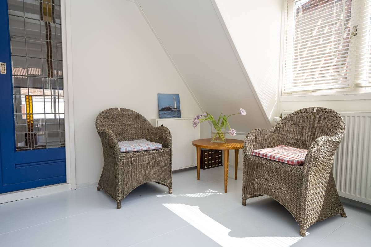 Het is heerlijk privé vertoeven op het verscholen dakterras aan de achterzijde van de woning.