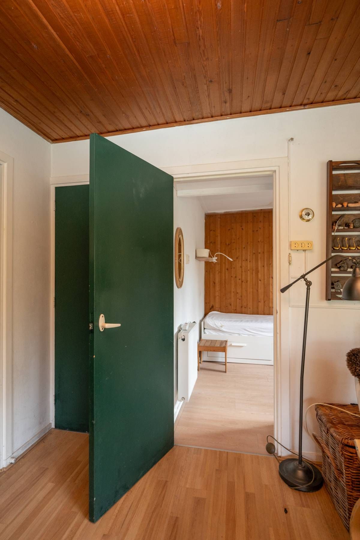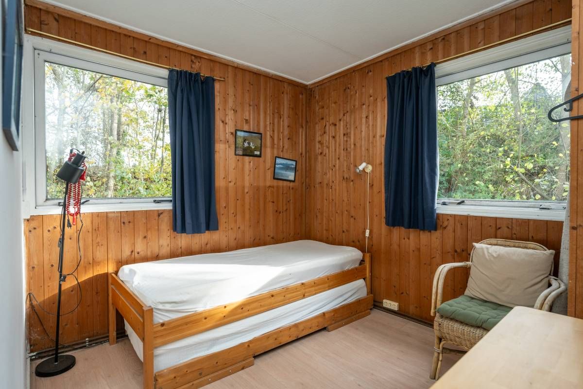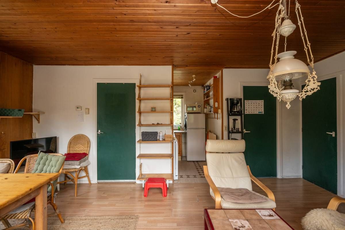 Via de entree stap je binnen in de woonkamer. Met wat zorg en een paar doordachte aanpassingen kan de woning moeiteloos worden aangepast aan de huidige normen en woonwensen om er weer een up-to-date recreatie woning van te maken.