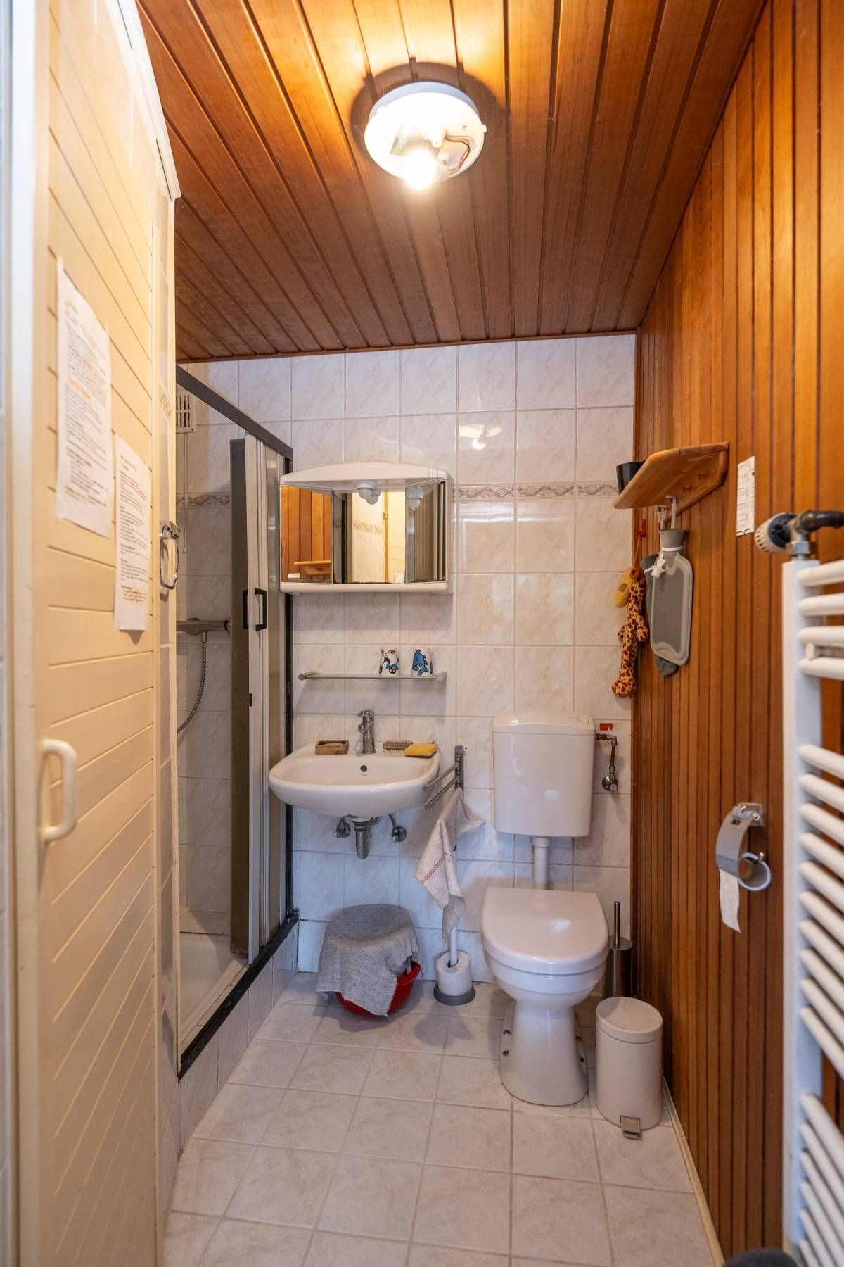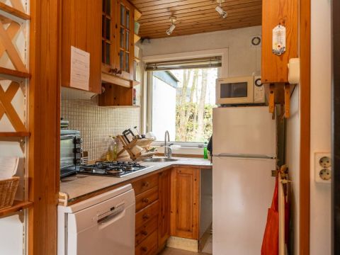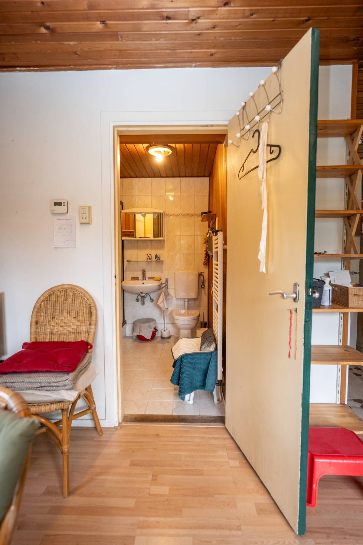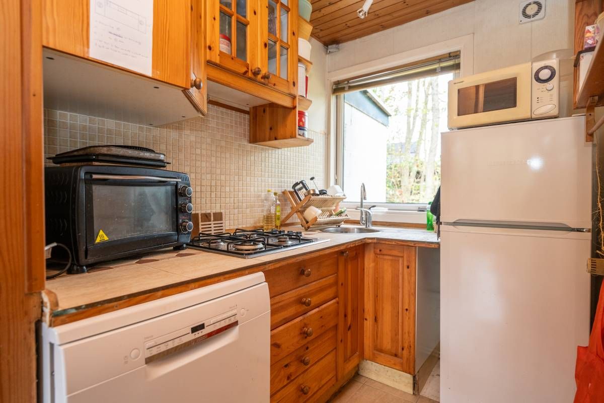 Via de entree stap je binnen in de woonkamer. Met wat zorg en een paar doordachte aanpassingen kan de woning moeiteloos worden aangepast aan de huidige normen en woonwensen om er weer een up-to-date recreatie woning van te maken.