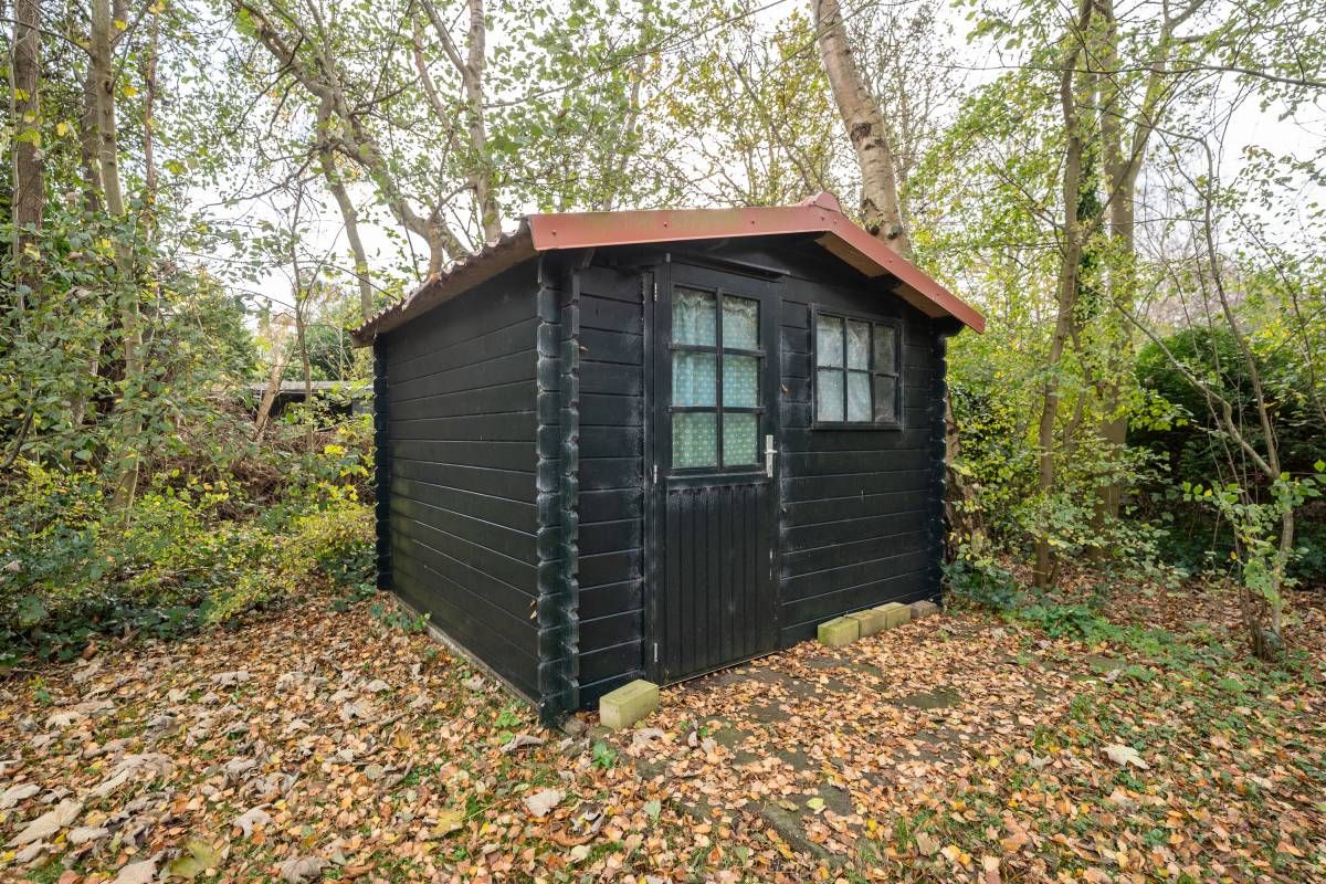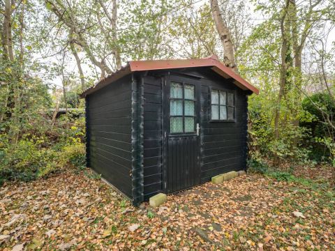 In de tuin is een houten tuinhuisje aanwezig. Ideaal voor het stallen van bijvoorbeeld fietsen en/of tuinmeubels.