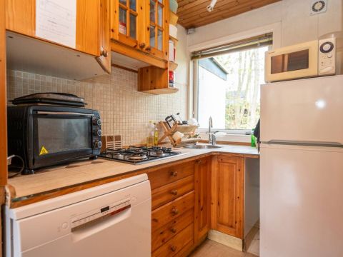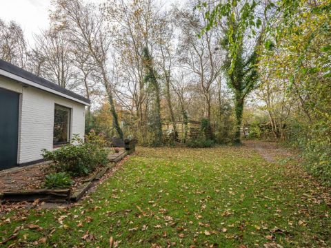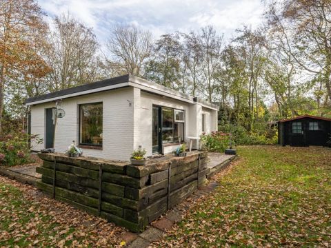De recreatiewoning ligt heerlijk vrij, met rondom een natuurlijke beschutting van bomen en struiken voor optimale privacy.
