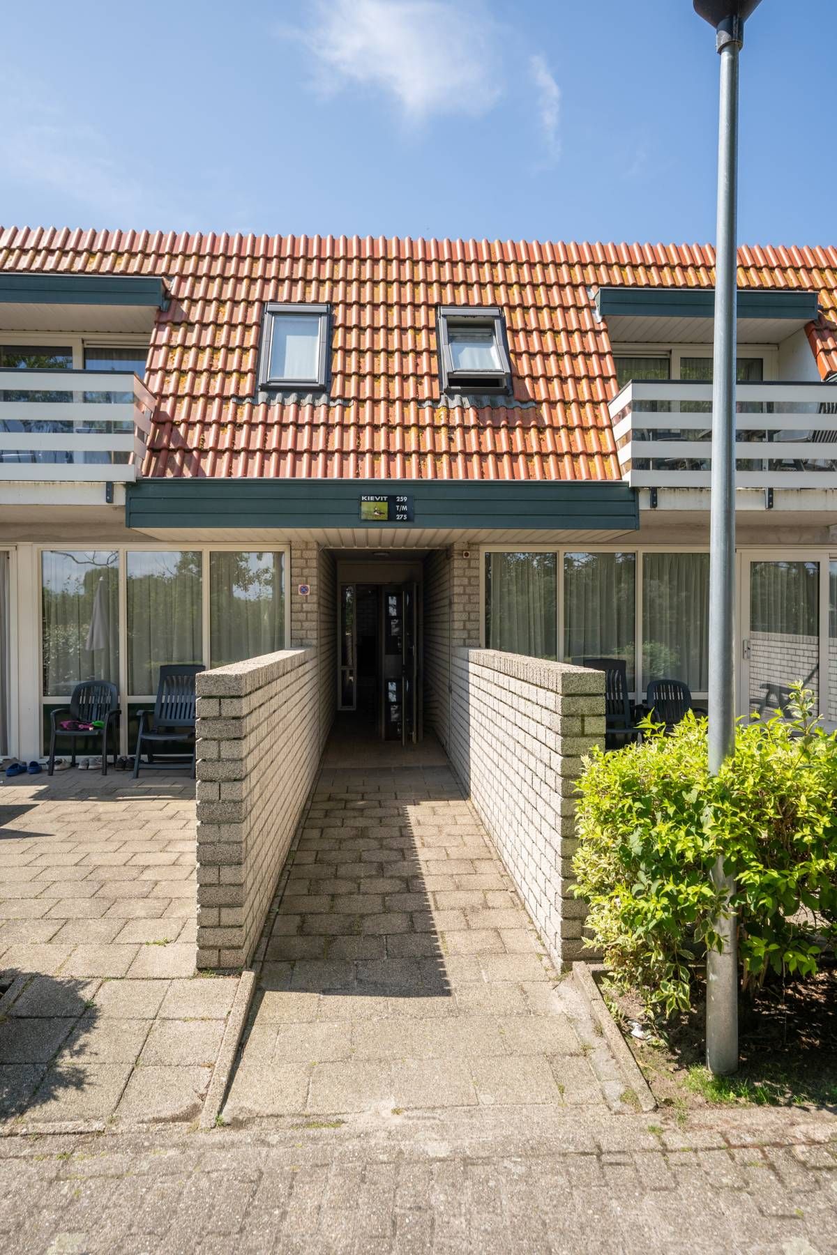 Via de schuifpui heeft u toegang tot het balkon aan de achterzijde van het complex, met uitzicht over de parkeerplaats en een aangrenzende paardenweide. Een fijn en rustig plekje om buiten te zitten en te ontspannen.