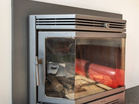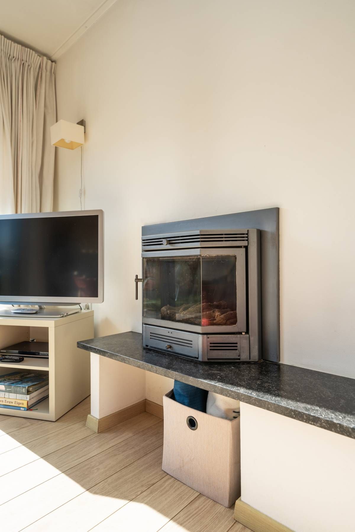 De sfeervolle zithoek beschikt over een gezellige gashaard.