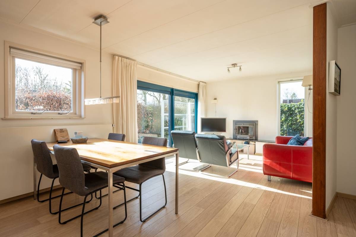 Via de schuifpui loopt u direct door naar het aangrenzende terras en de tuin, waardoor binnen en buiten naadloos in elkaar overlopen.