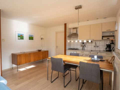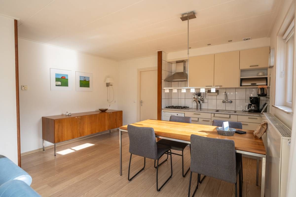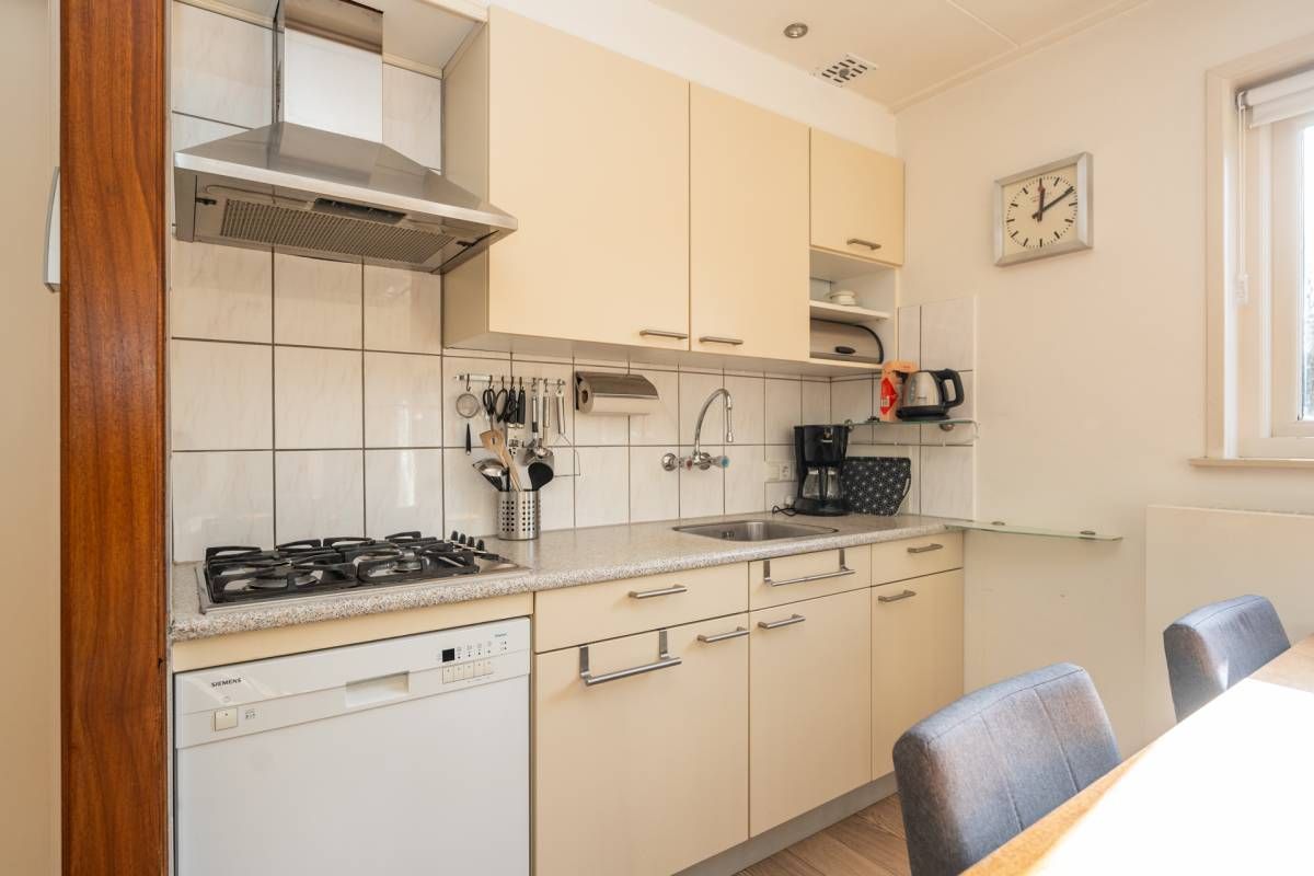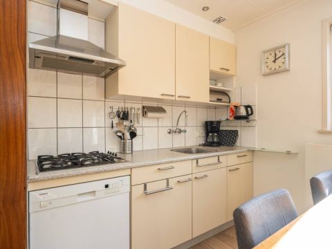 De keuken is eenvoudig maar keurig van opzet en praktisch ingericht. U beschikt hier onder andere over een gaskookplaat, afzuigkap en vaatwasser. De opstelling biedt voldoende werk- en bergruimte voor een comfortabel verblijf.