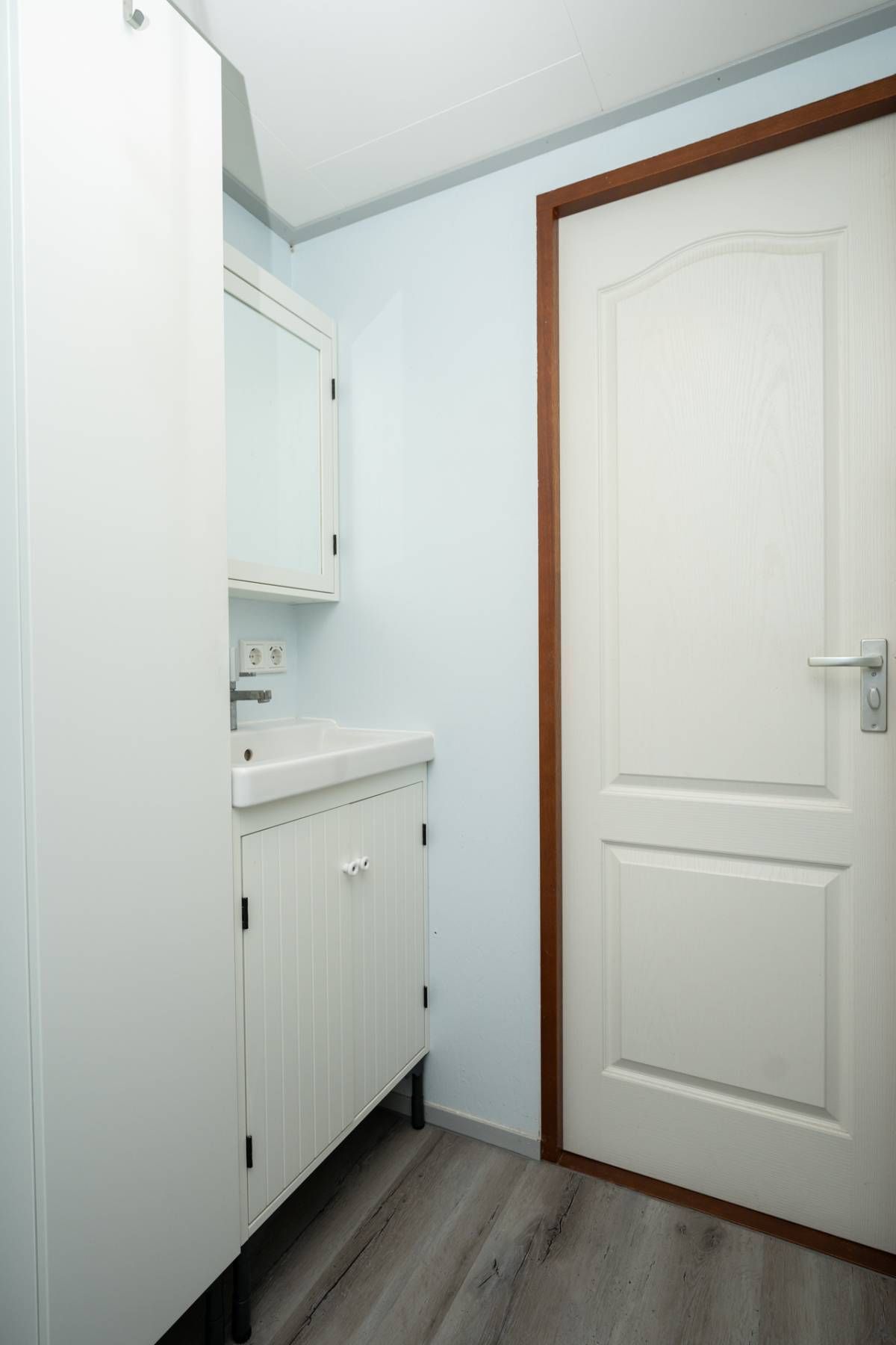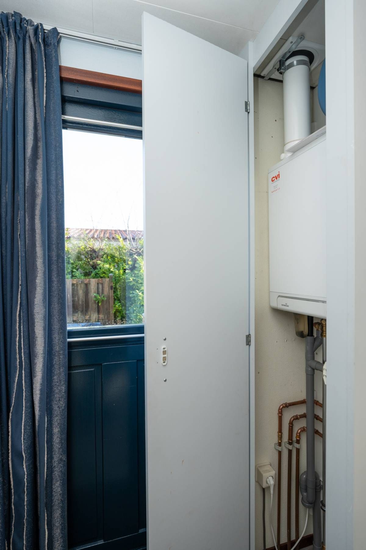 In de hal vindt u een garderobe en een kast met de cv-ketel, waarmee het chalet het hele jaar door aangenaam warm te houden is.