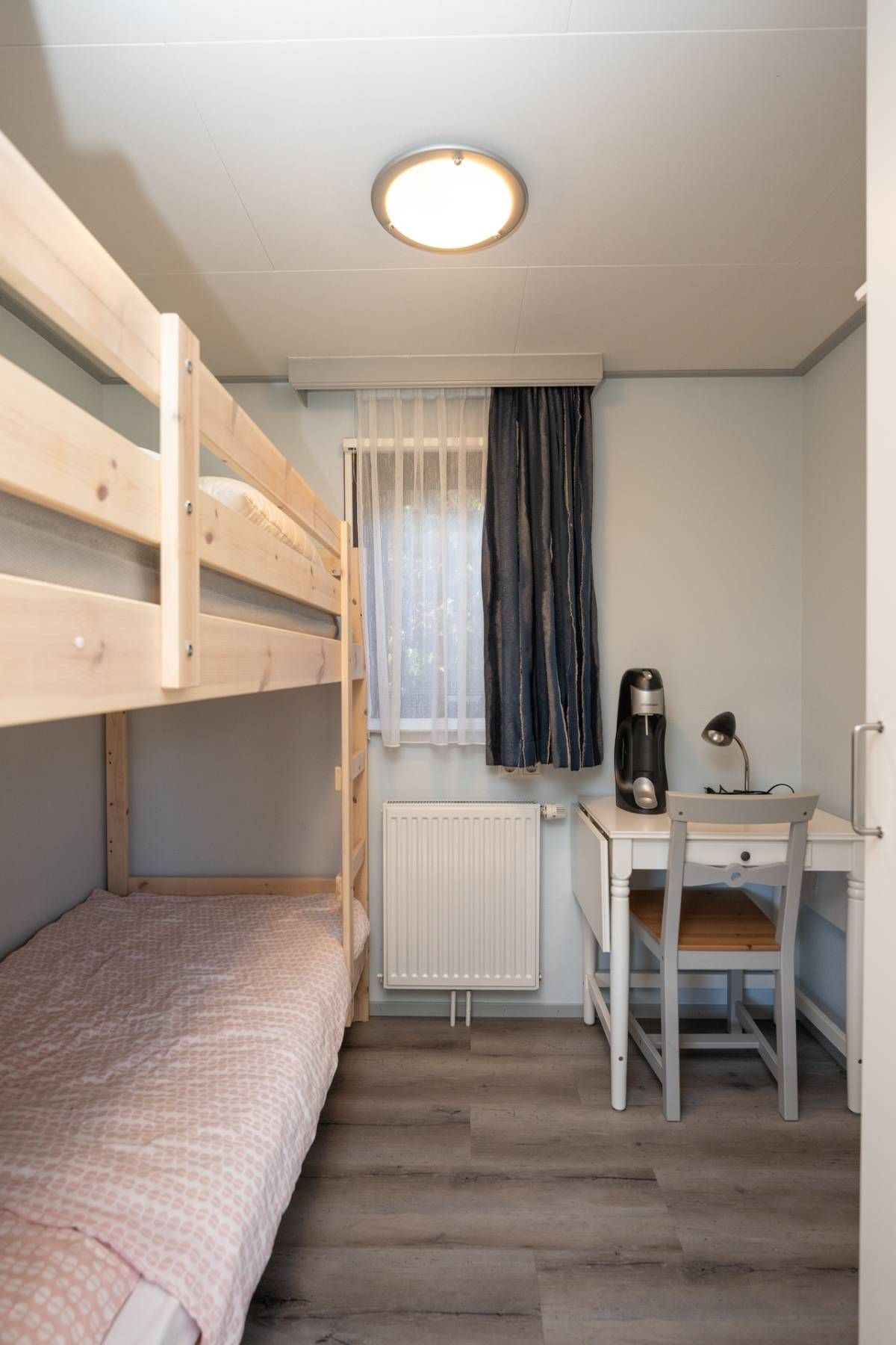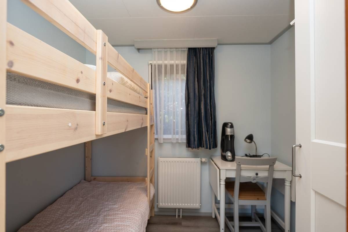 Het chalet beschikt over twee slaapkamers. De eerste slaapkamer is iets ruimer van opzet en voorzien van een tweepersoonsbed en opbergkasten. De tweede slaapkamer beschikt over een stapelbed.