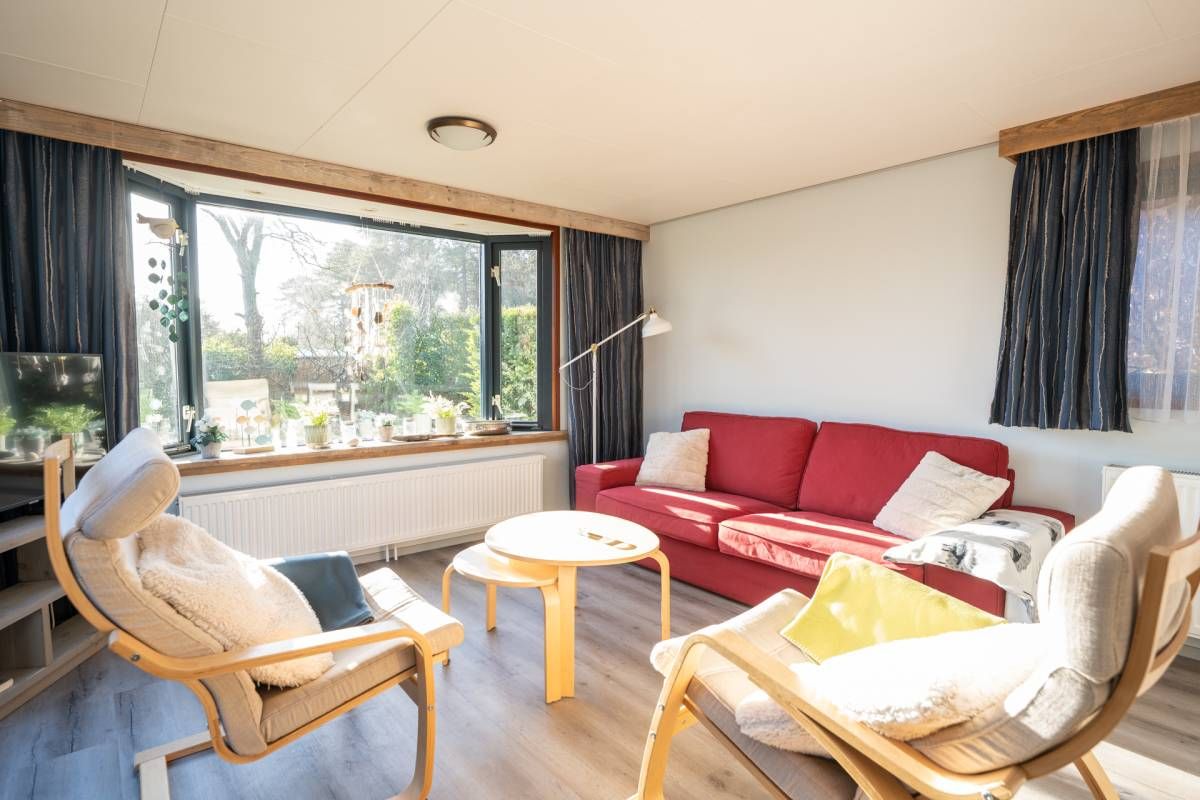 Indeling | De woonkamer is licht en beschikt over een gezellige zithoek en een gashaard. Dankzij de grote raampartijen geniet u van volop natuurlijk licht en uitzicht op het groen.