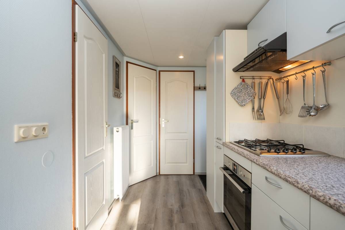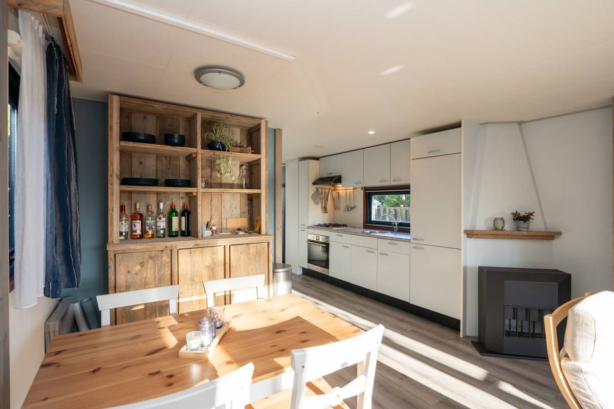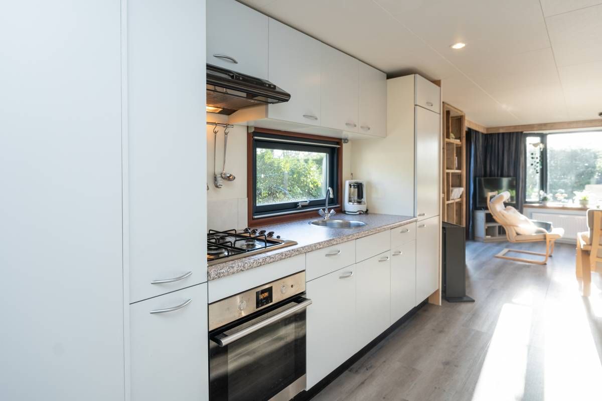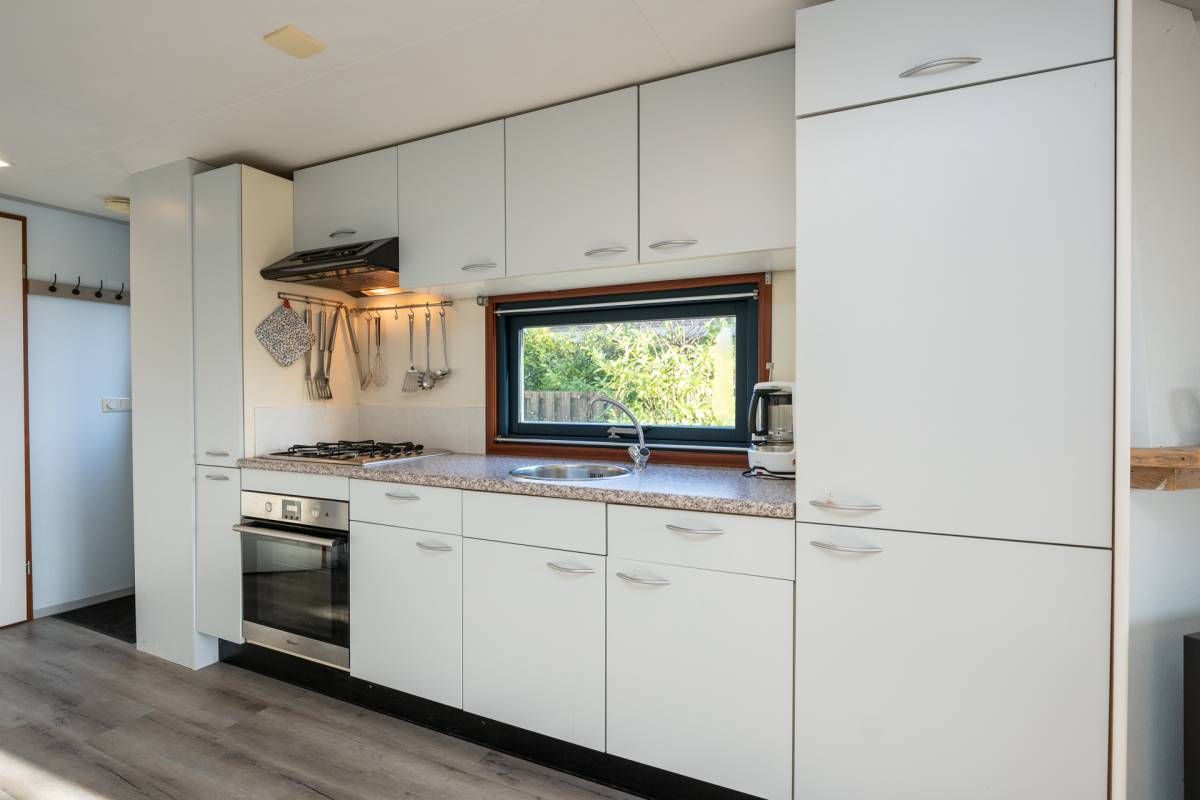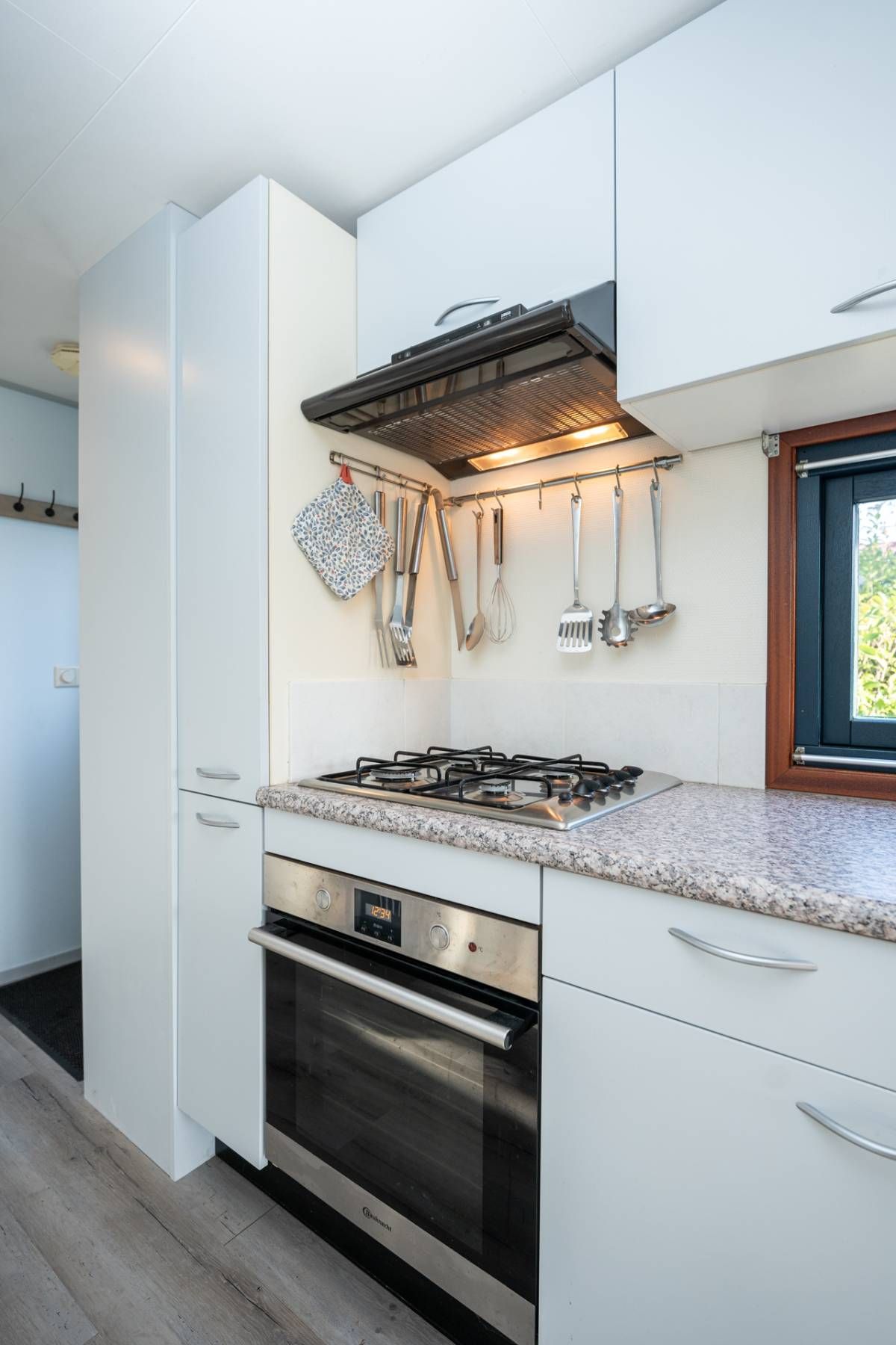 De open keuken is netjes en uitgerust met onder andere een gaskookplaat, afzuigkap, oven en koelkast, waardoor u hier moeiteloos heerlijke maaltijden kunt bereiden.
