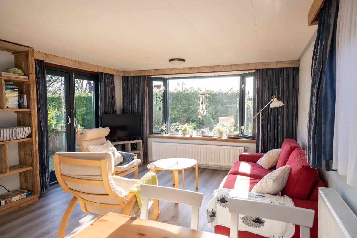 Aan de woonkamer grenst een eethoek, perfect voor gezellige diners.