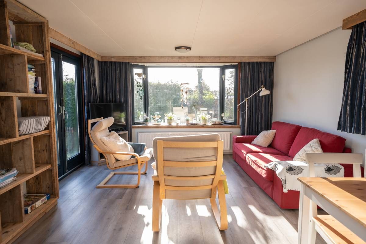 Daarnaast is er een vrijstaand houten tuinhuisje voor het opbergen van spullen en aansluitingen voor een wasmachine en/of droger.