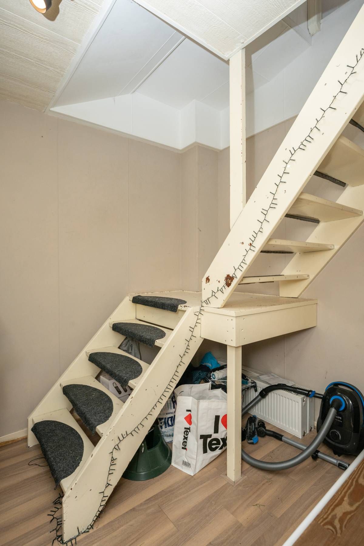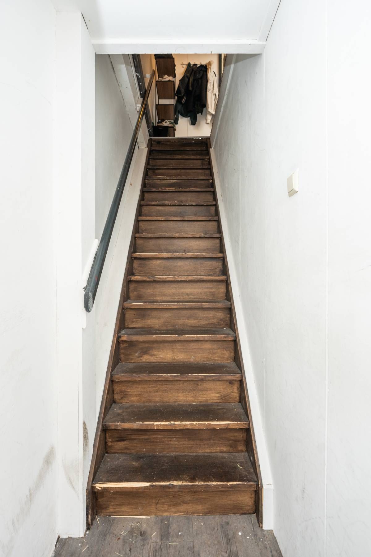Halverwege de winkel bevindt zich de trap naar de verdieping. Deze strekt zich uit over vrijwel de gehele lengte van het pand en wordt momenteel gebruikt als opslagruimte, ideaal ter ondersteuning van winkelactiviteiten. Hier bevinden zich tevens een toilet, een pantry en de cv-opstelling. Via een vaste trap is de tweede verdieping bereikbaar, die extra (opslag)ruimte biedt en daarmee nog meer gebruiksmogelijkheden creëert.