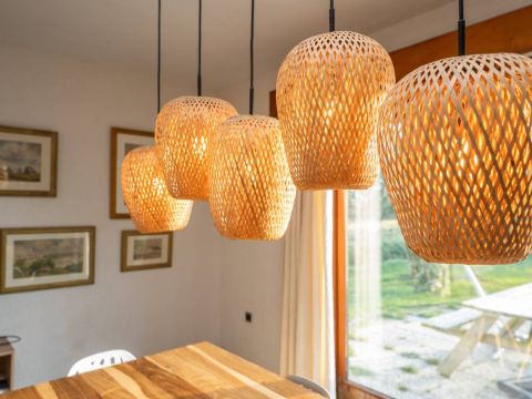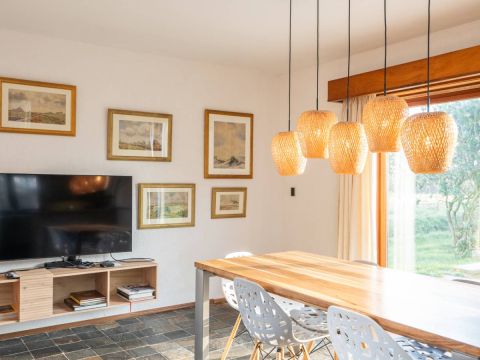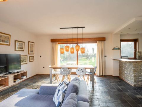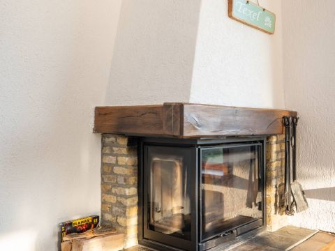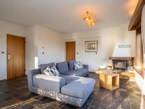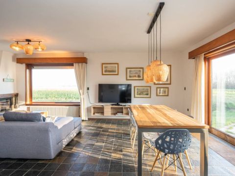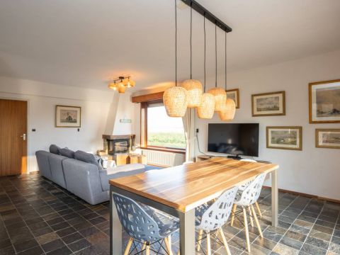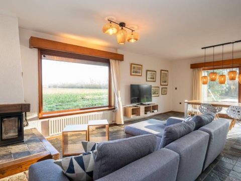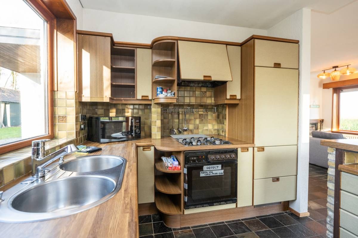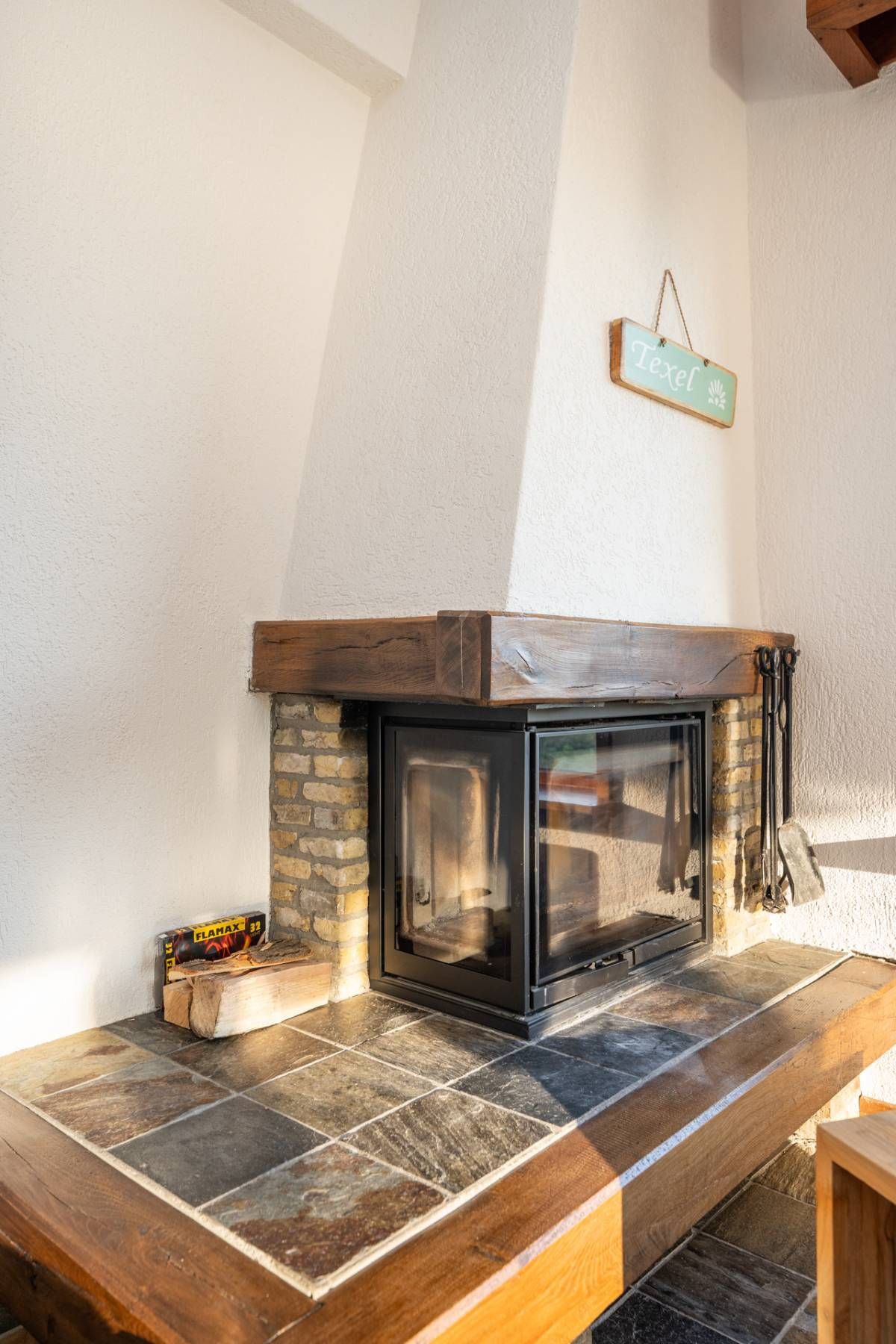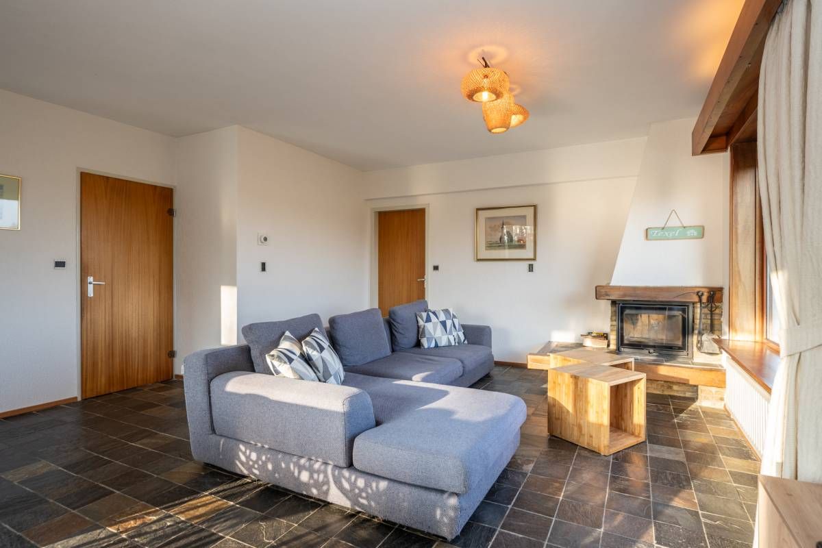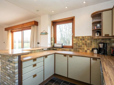 De open woonkamer vormt het warme hart van de woning. Dankzij de grote raampartijen geniet u hier van een prachtige, zonnige lichtinval en een vrij uitzicht over de omliggende natuur. De ruimte voelt open en tegelijk knus aan. De zithoek beschikt over een heerlijke open haard.