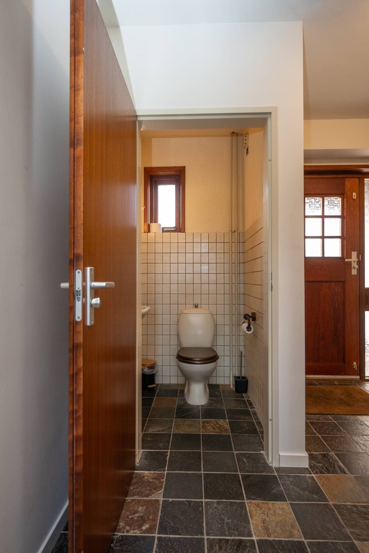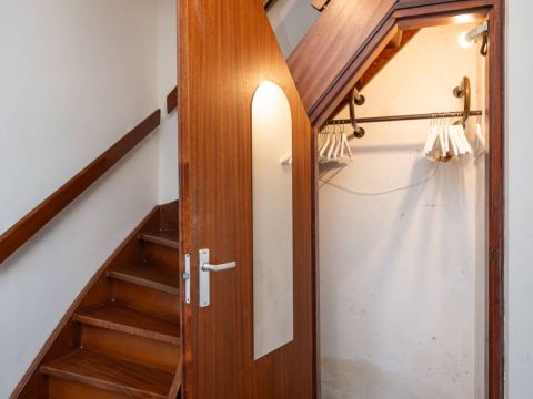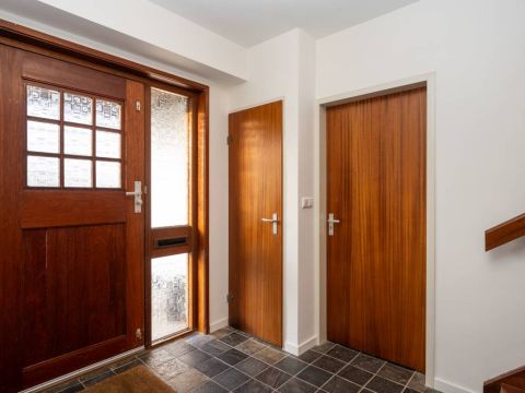 Via de hal bereikt u het toilet op de begane grond. In de hal bevindt zich tevens een trapkast met garderobe en de meterkast.