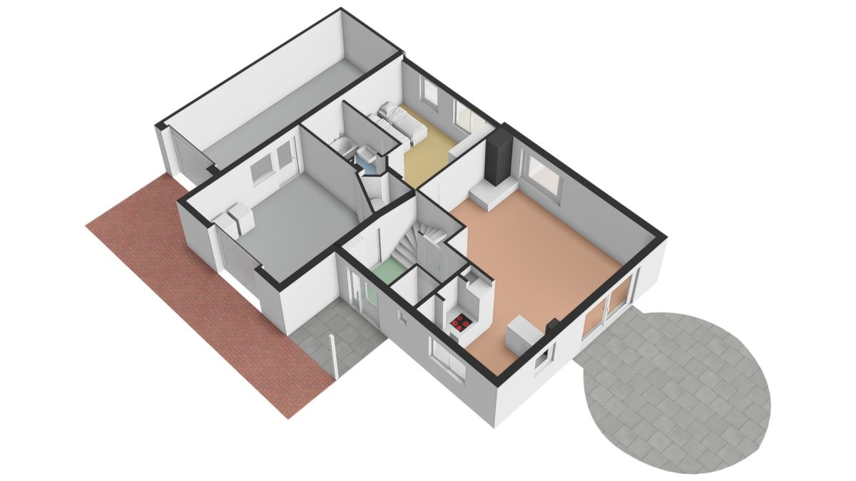 Indeling | Via de entree aan de voorzijde van de woning betreedt u de hal. Hier bevinden zich de trapopgang naar de verdieping, de meterkast, toilet en een praktische trapkast. Hierna doorloop naar de woonkamer.
