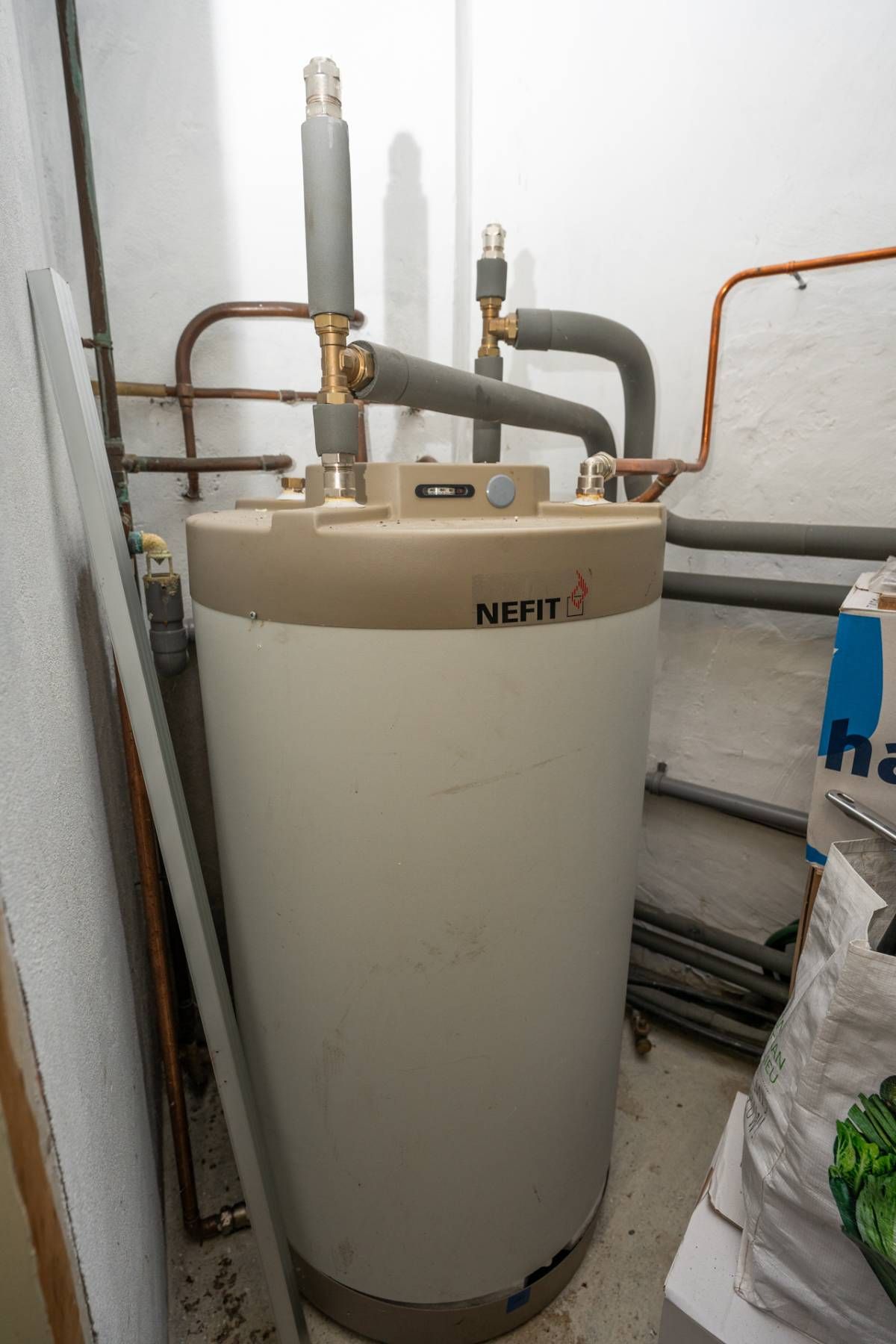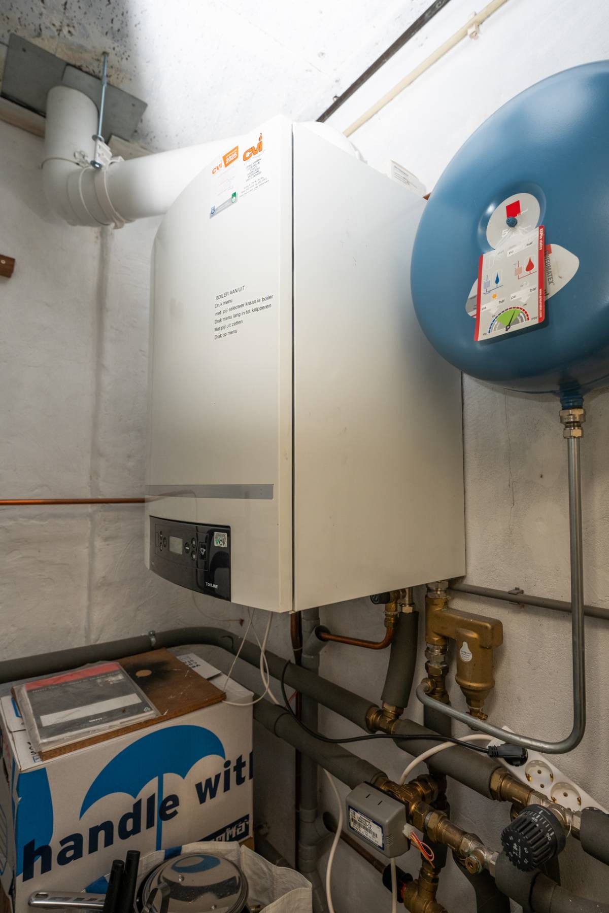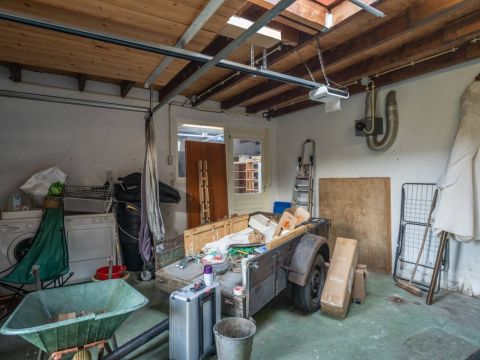 Via een binnendeur is er toegang tot een tweede garage/berging, eveneens voorzien van een overheaddeur en een lichtkoepel. In deze ruimte bevindt zich een eenvoudige pantry en de opstel plaats voor de cv-ketel en warmwaterboiler.