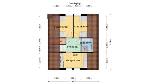 Verdieping | Op de verdieping komt u op de overloop, die toegang biedt tot drie slaapkamers en de badkamer.