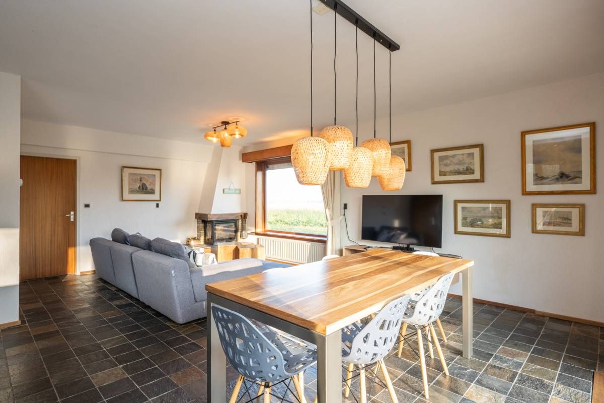 Aangrenzend bevindt zich de eethoek, met zicht op de tuin. Via de schuifpui loopt u gemakkelijk naar de tuin en het terras.