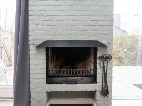 Het sfeervolle terras is gesitueerd op het zuiden en is voorzien van een stenen barbecue, 2 relax stoelen en een mooie houten tuin set met parasol.