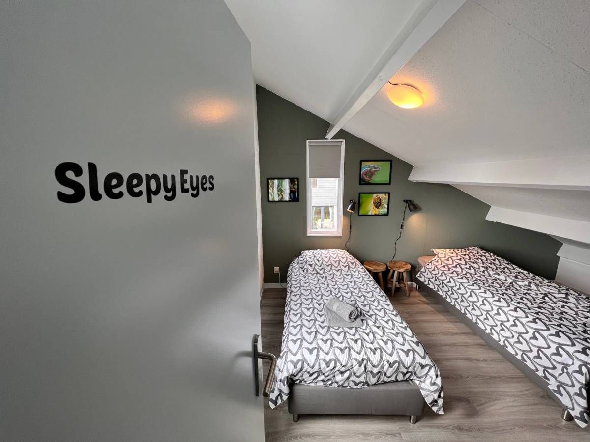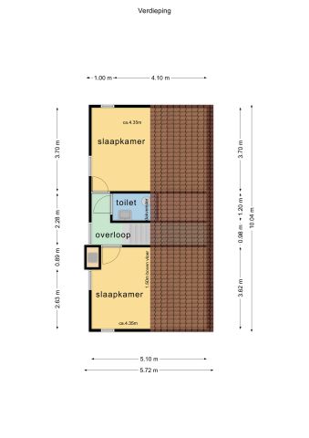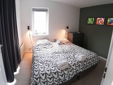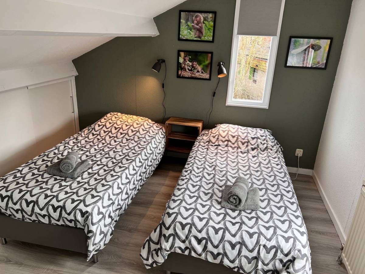 Op de verdieping zijn 2 slaapkamers beide met 2 enkele bedden en een toilet met wastafel, voorzien van dakraam.