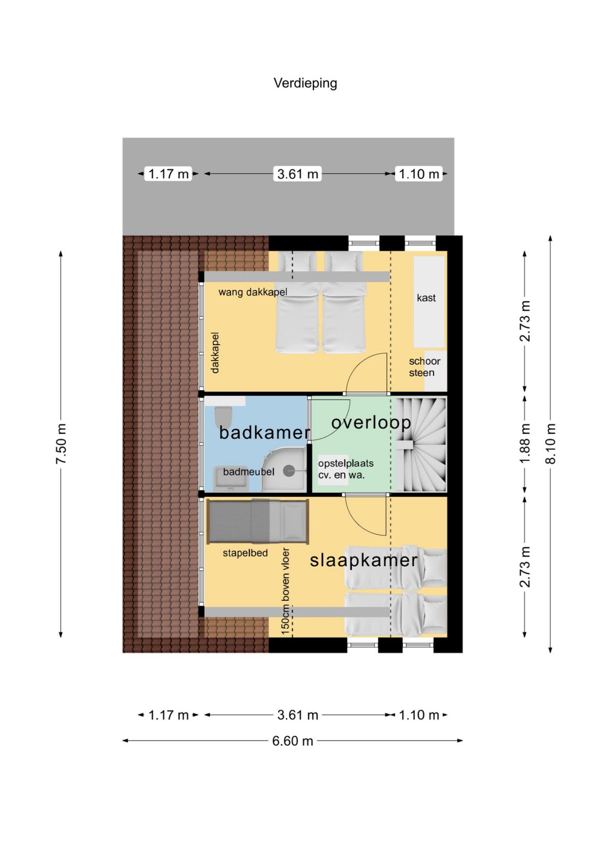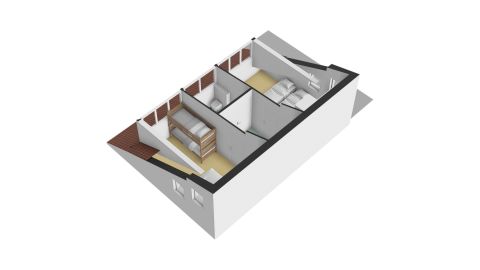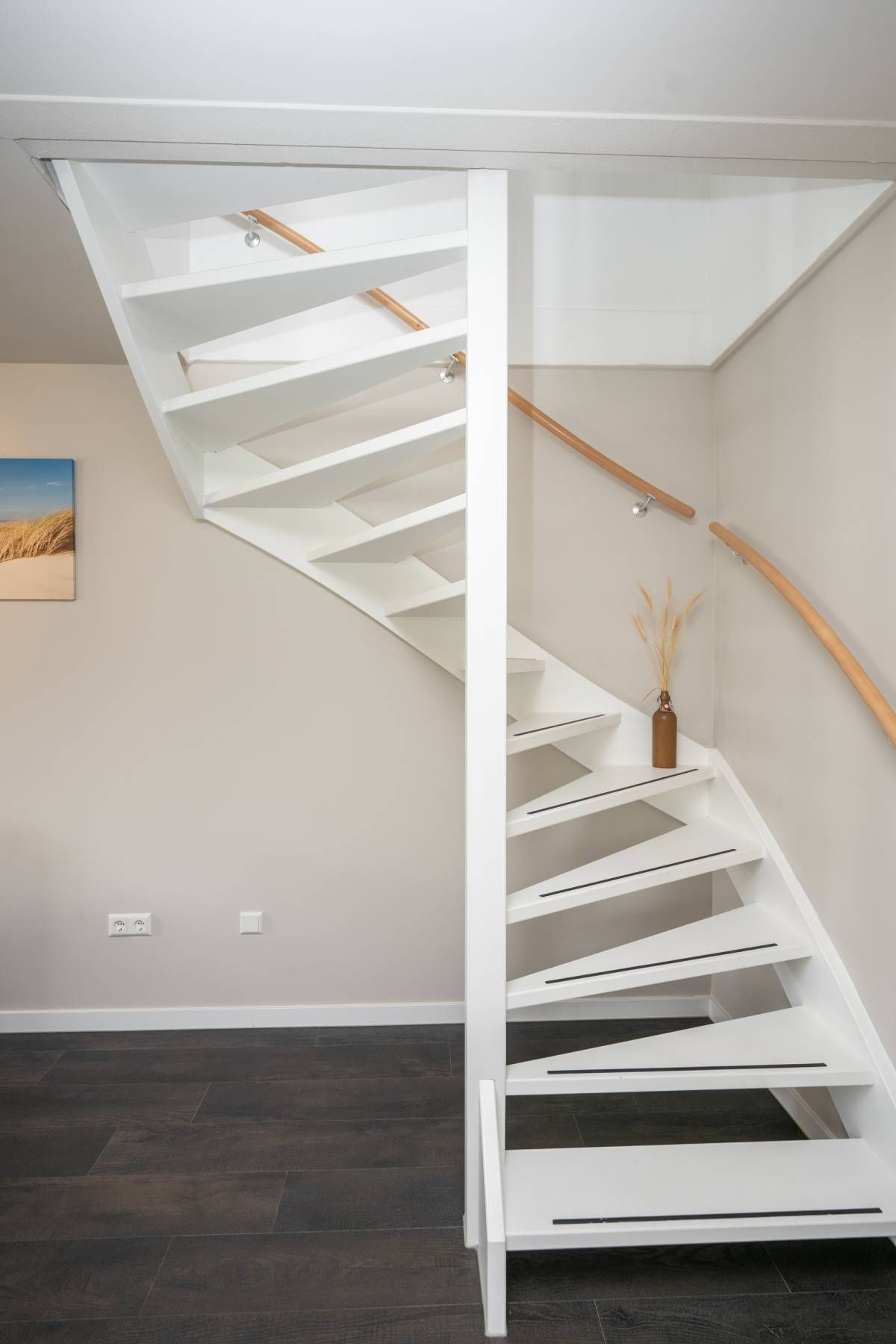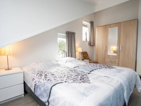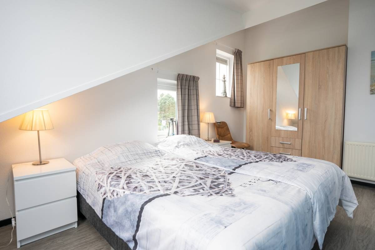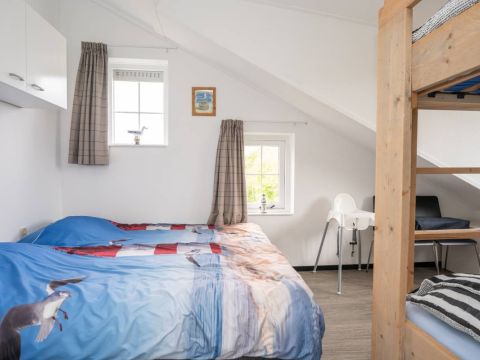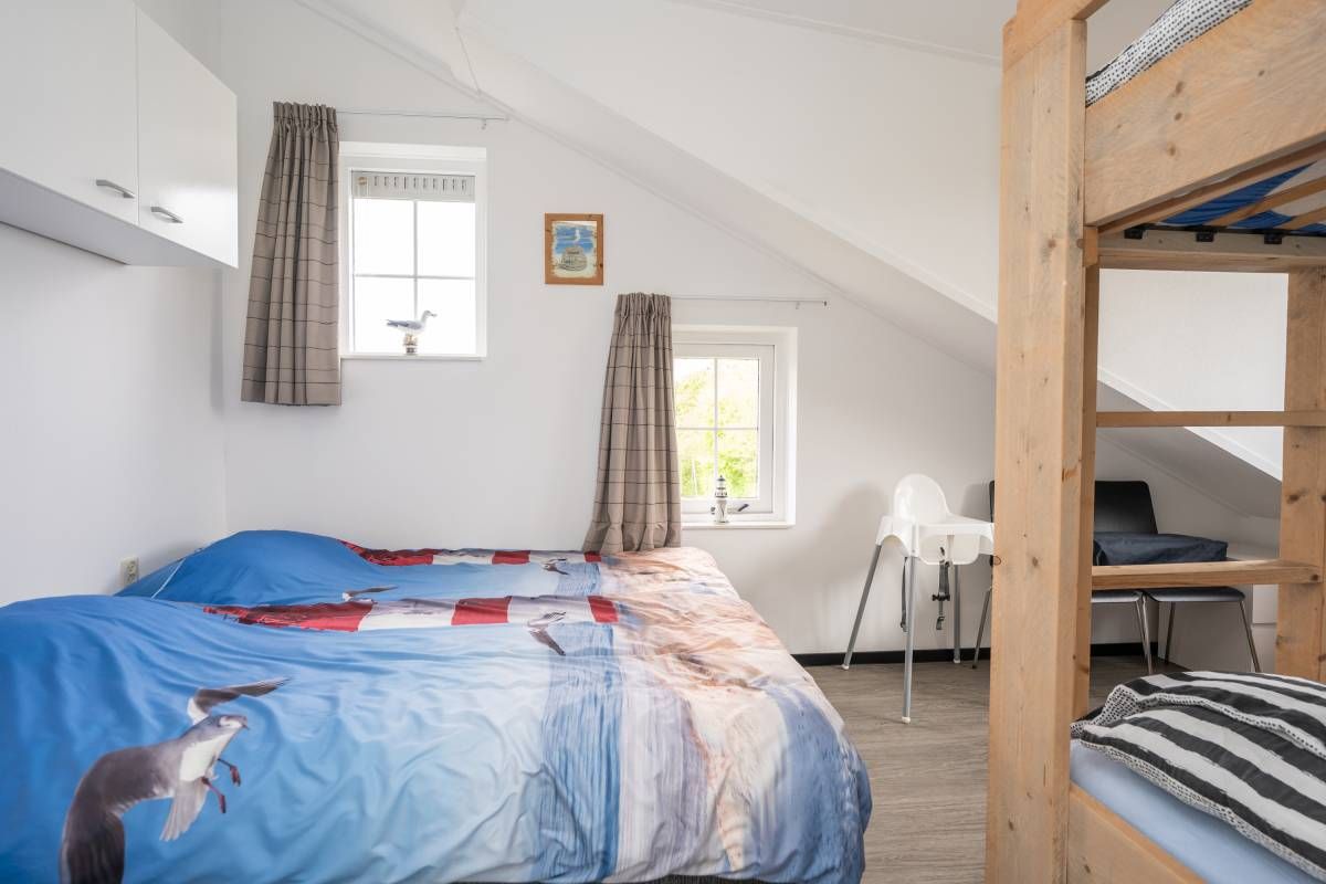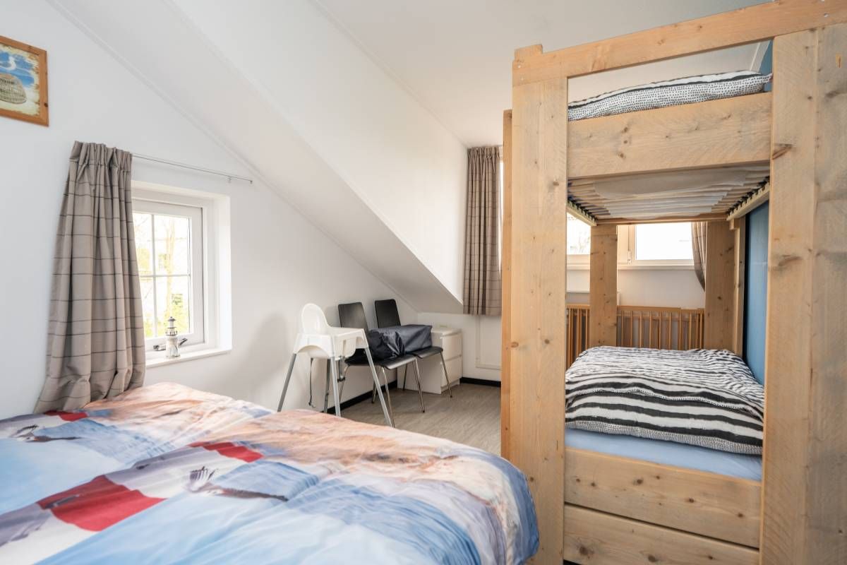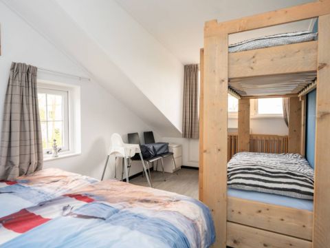 Ook deze verdieping is zeer smaakvol en warm ingericht. De linker slaapkamer is voorzien van zowel een tweepersoonsbed als een stapelbed. De rechter slaapkamer op de verdieping heeft een tweepersoonsbed en een royale kast.