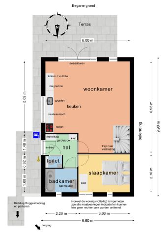 Indeling | U komt binnen in de hal met toegang tot de badkamer, een separaat toilet, slaapkamer en de woonkamer met open keuken. De royale woonkamer heeft prachtig lichtinval door de vele ramen en via de openslaande deuren heeft u toegang tot het terras en de groene tuin. De woning is zeer smaakvol ingericht. U voelt zich hier gelijk thuis!
