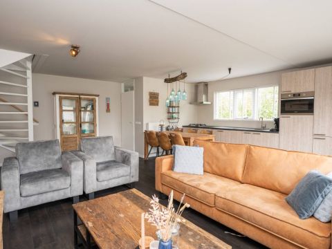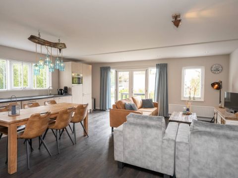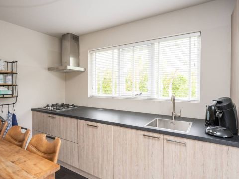 De mooie en ruime open keuken heeft voldoende opbergruimte en beschikt onder meer over een combi-magnetron, een vaatwasser, een koel/vriescombinatie, een gaskookplaat en een afzuigkap. Koken met dit uitzicht is een waar genot!