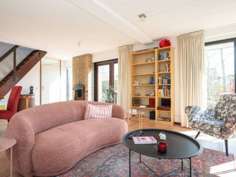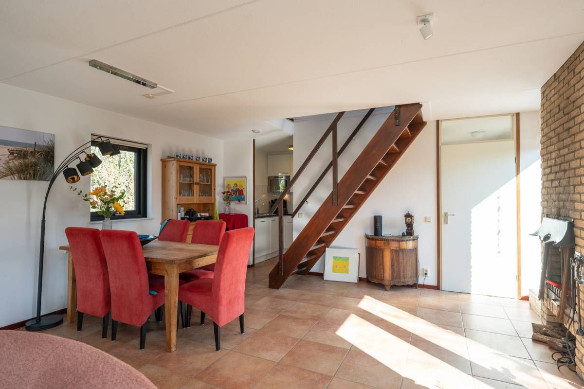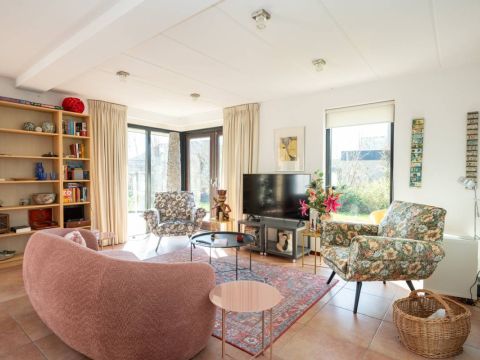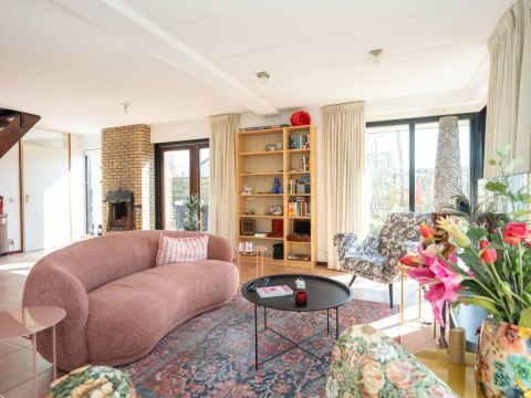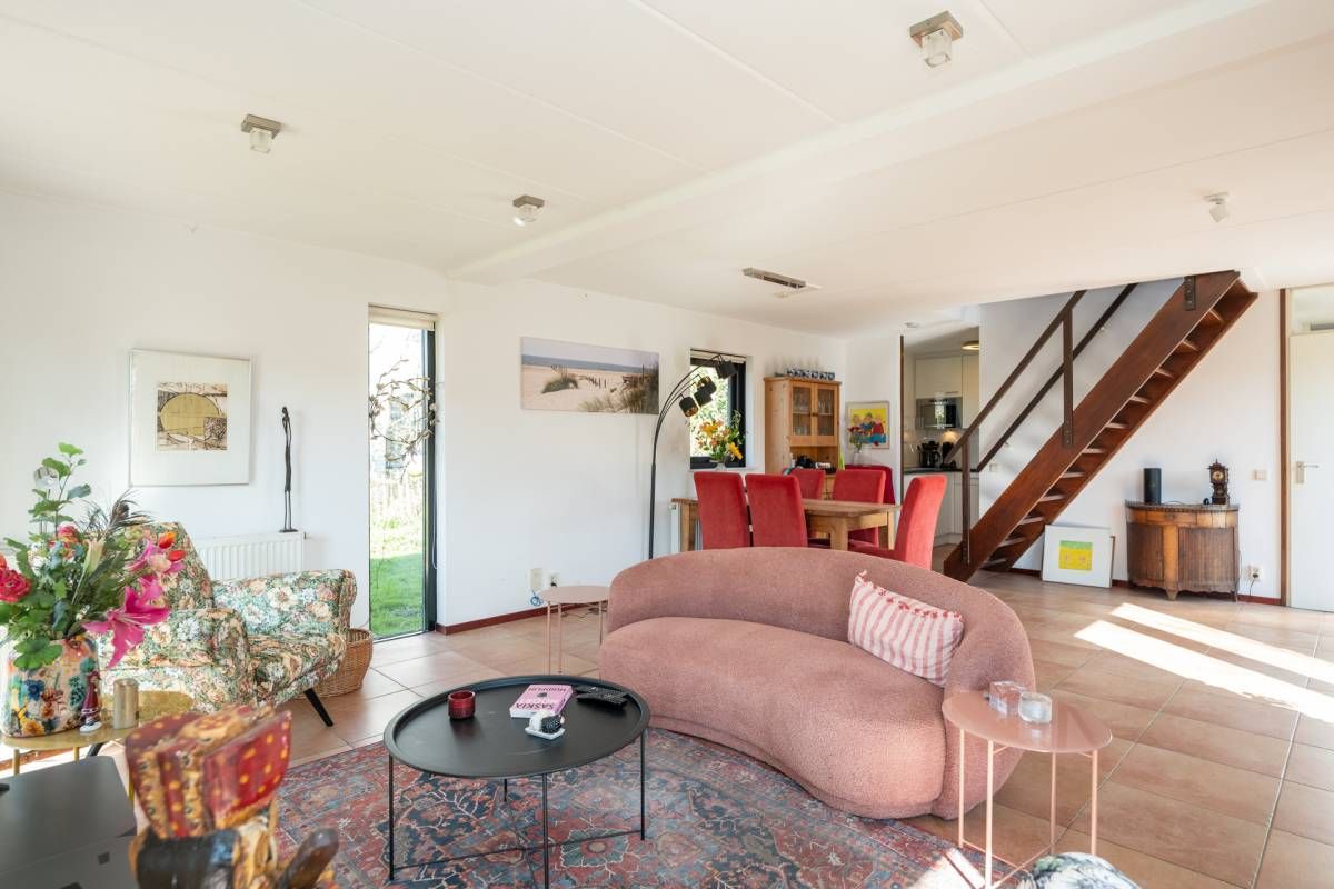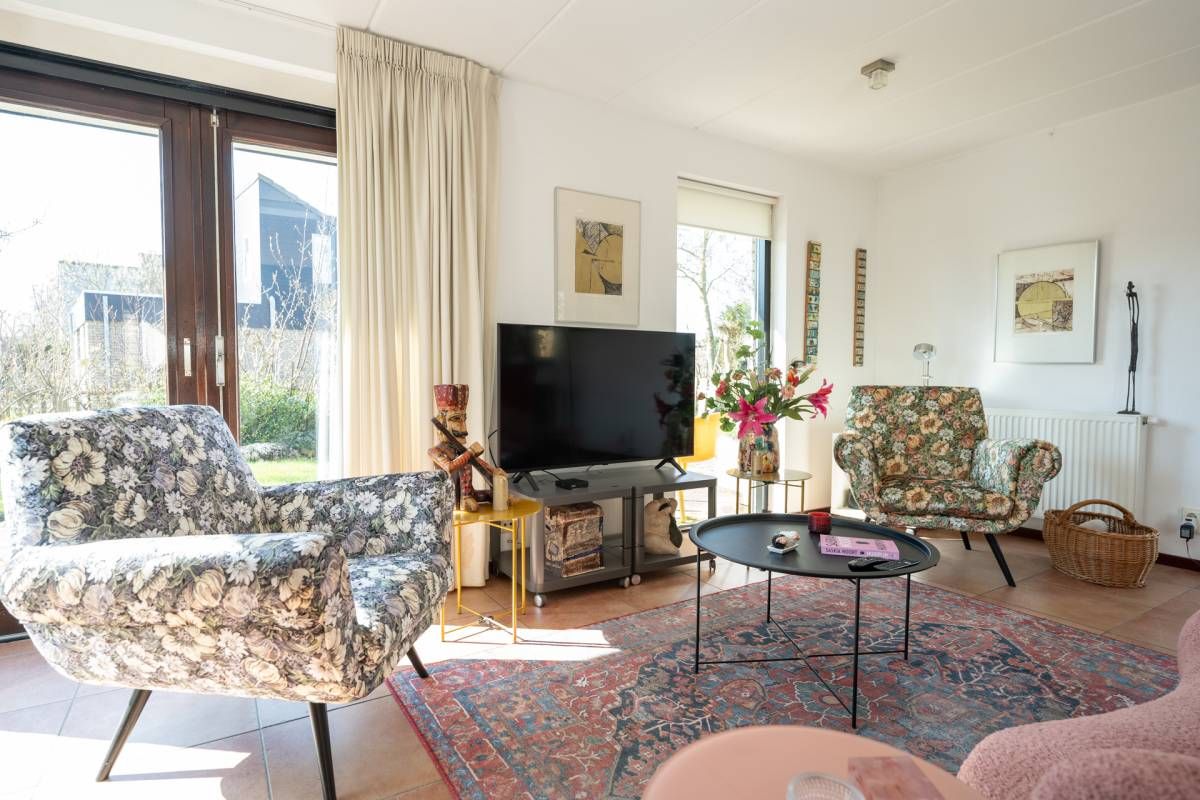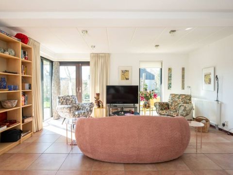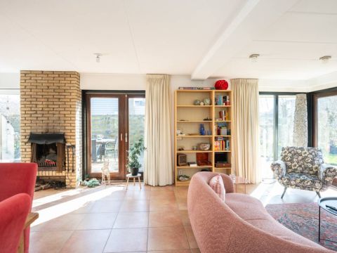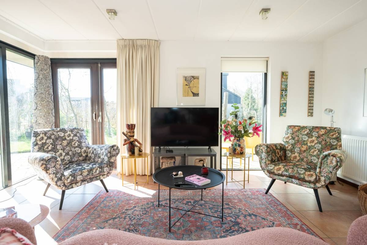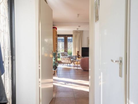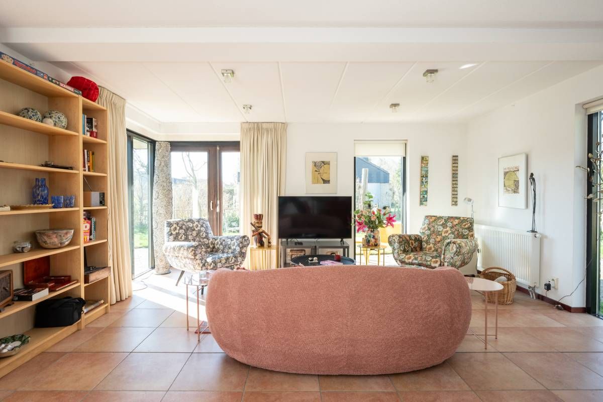De woning verwelkomt u met een lichte en sfeervolle woonkamer, waarin grote ramen een prachtig uitzicht bieden op de tuin.