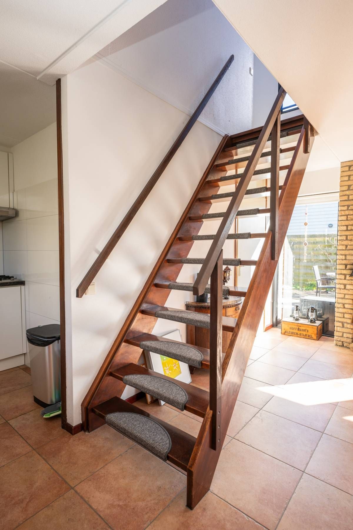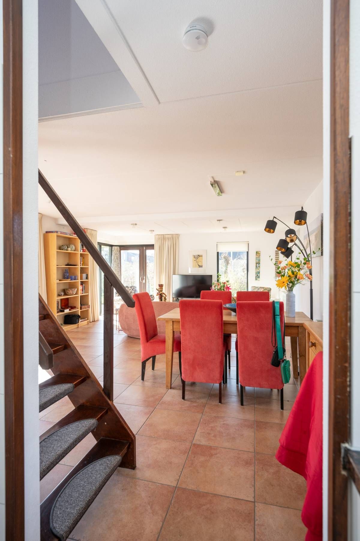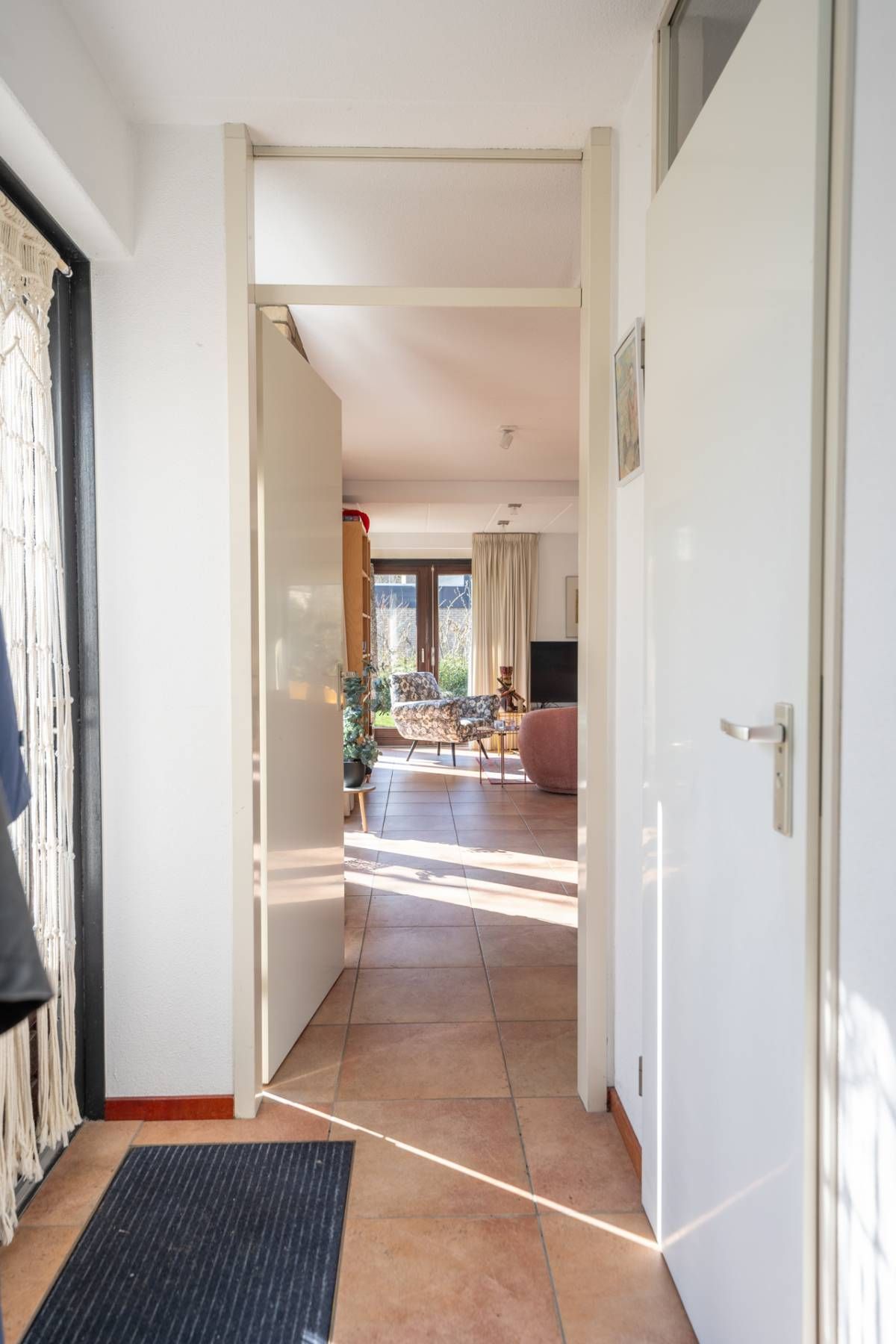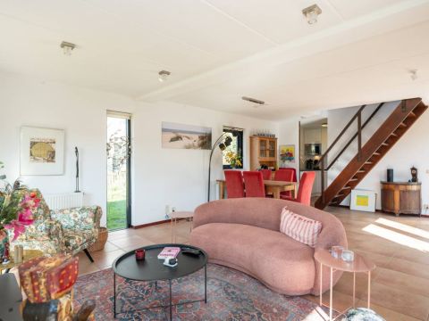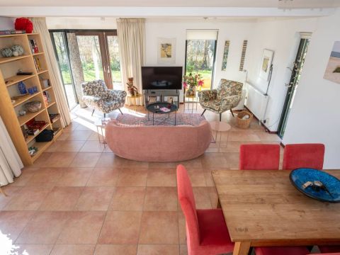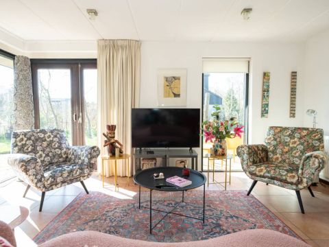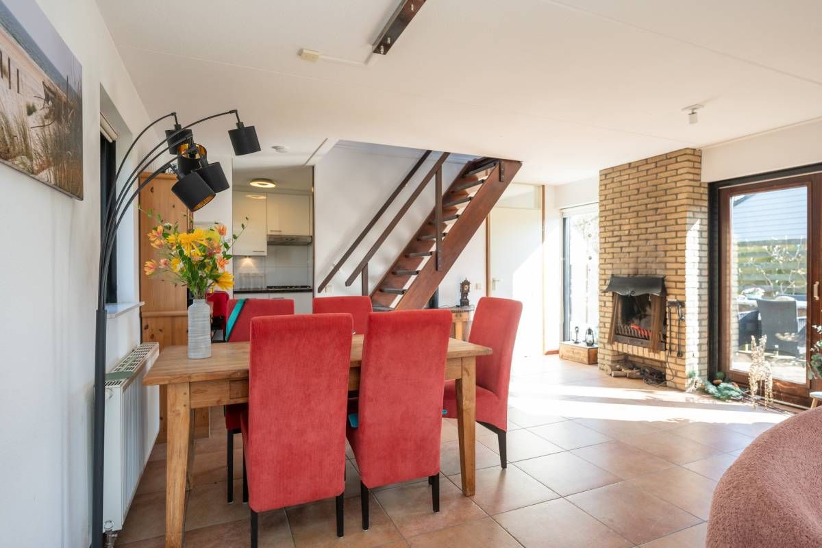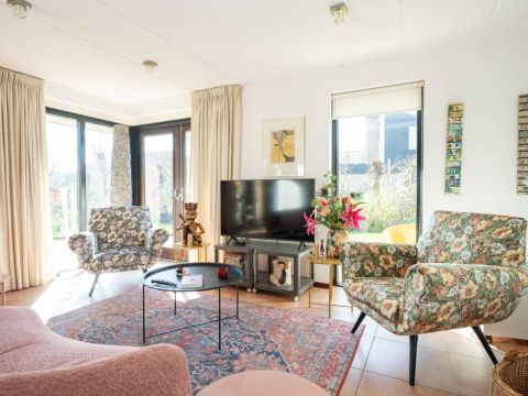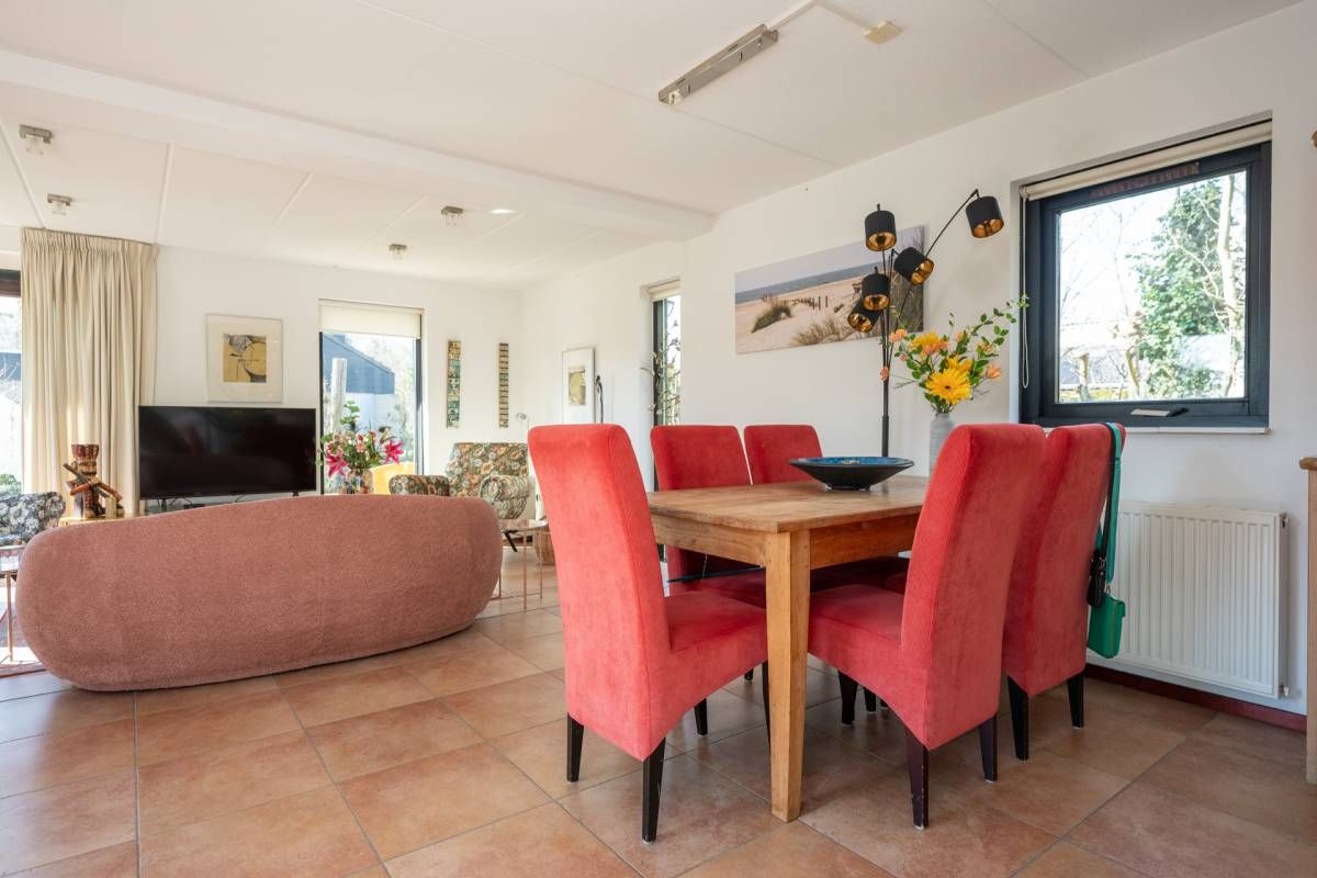 De woning verwelkomt u met een lichte en sfeervolle woonkamer, waarin grote ramen een prachtig uitzicht bieden op de tuin.