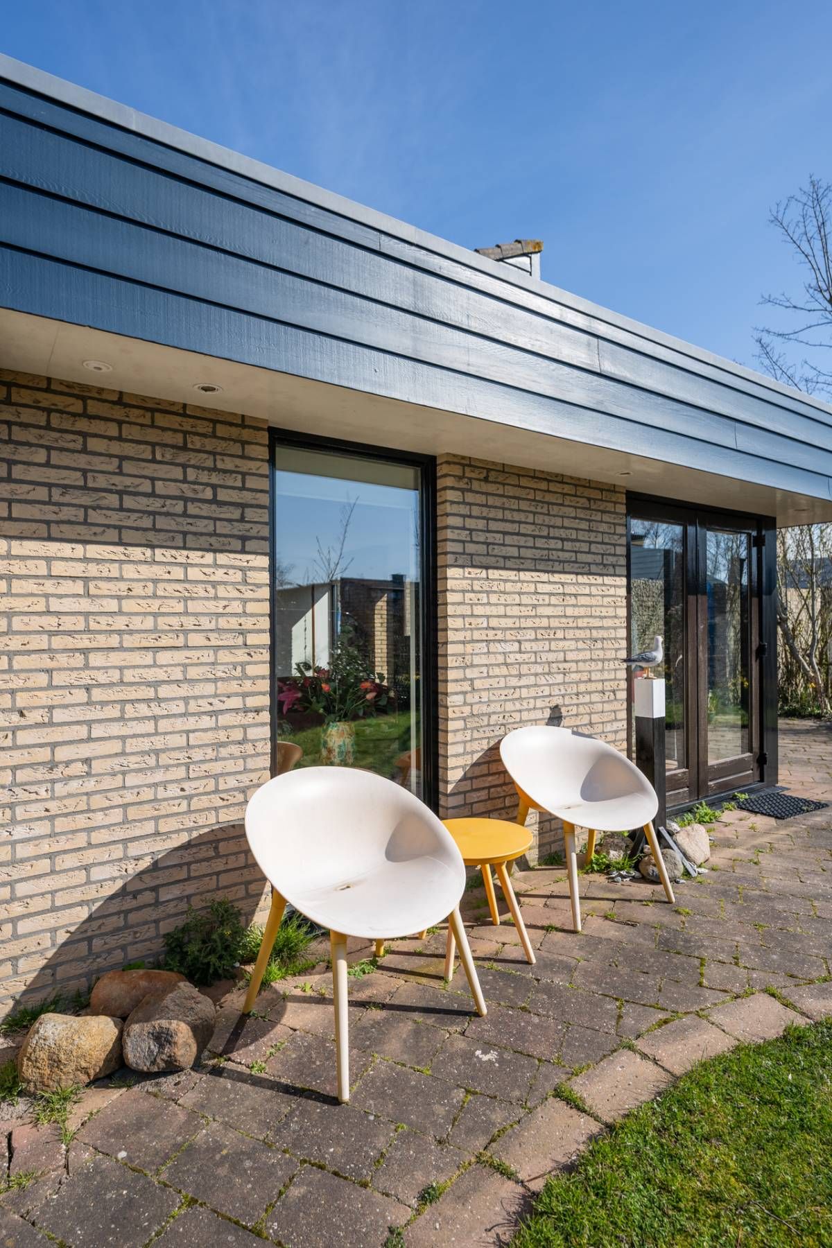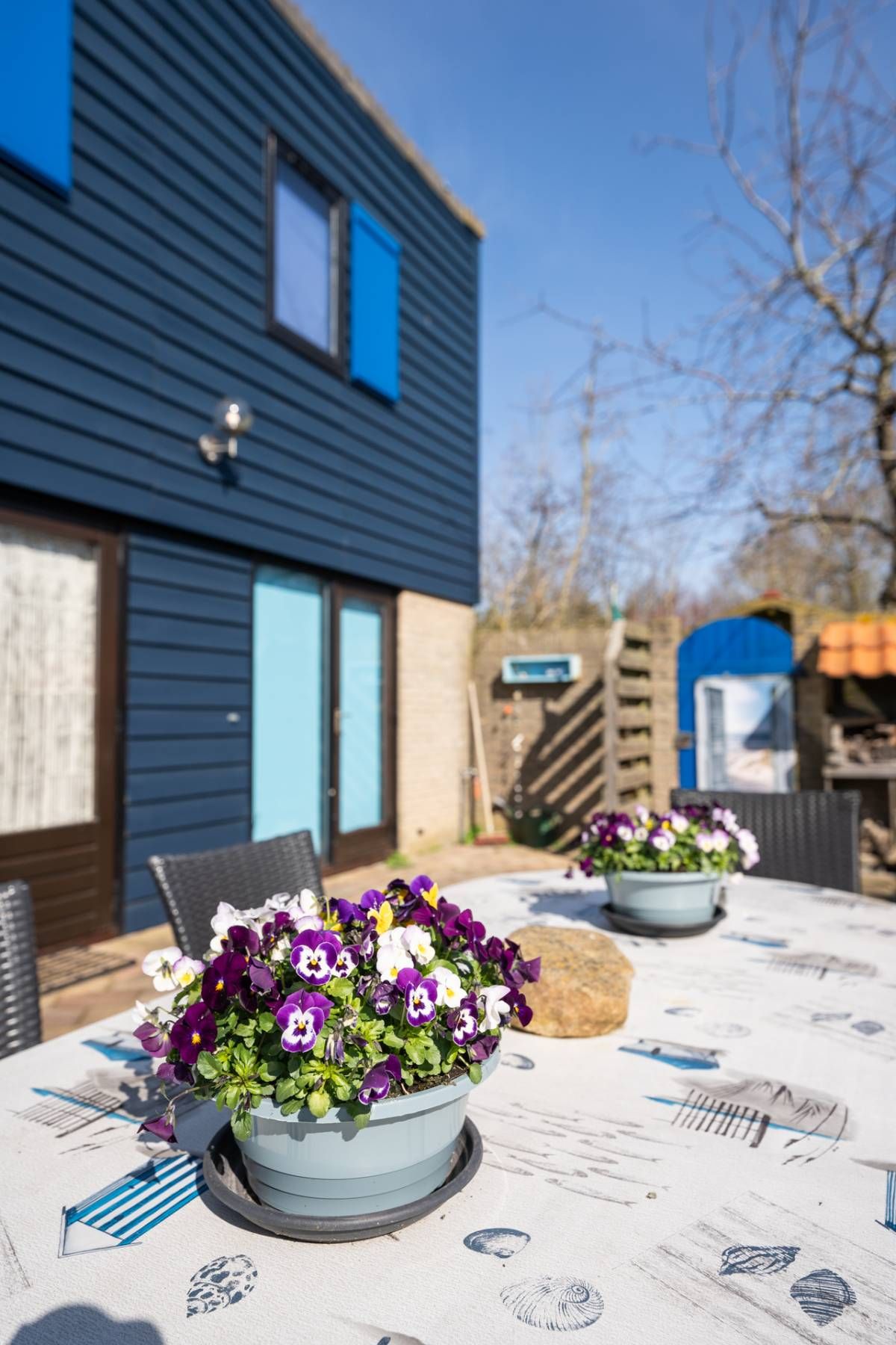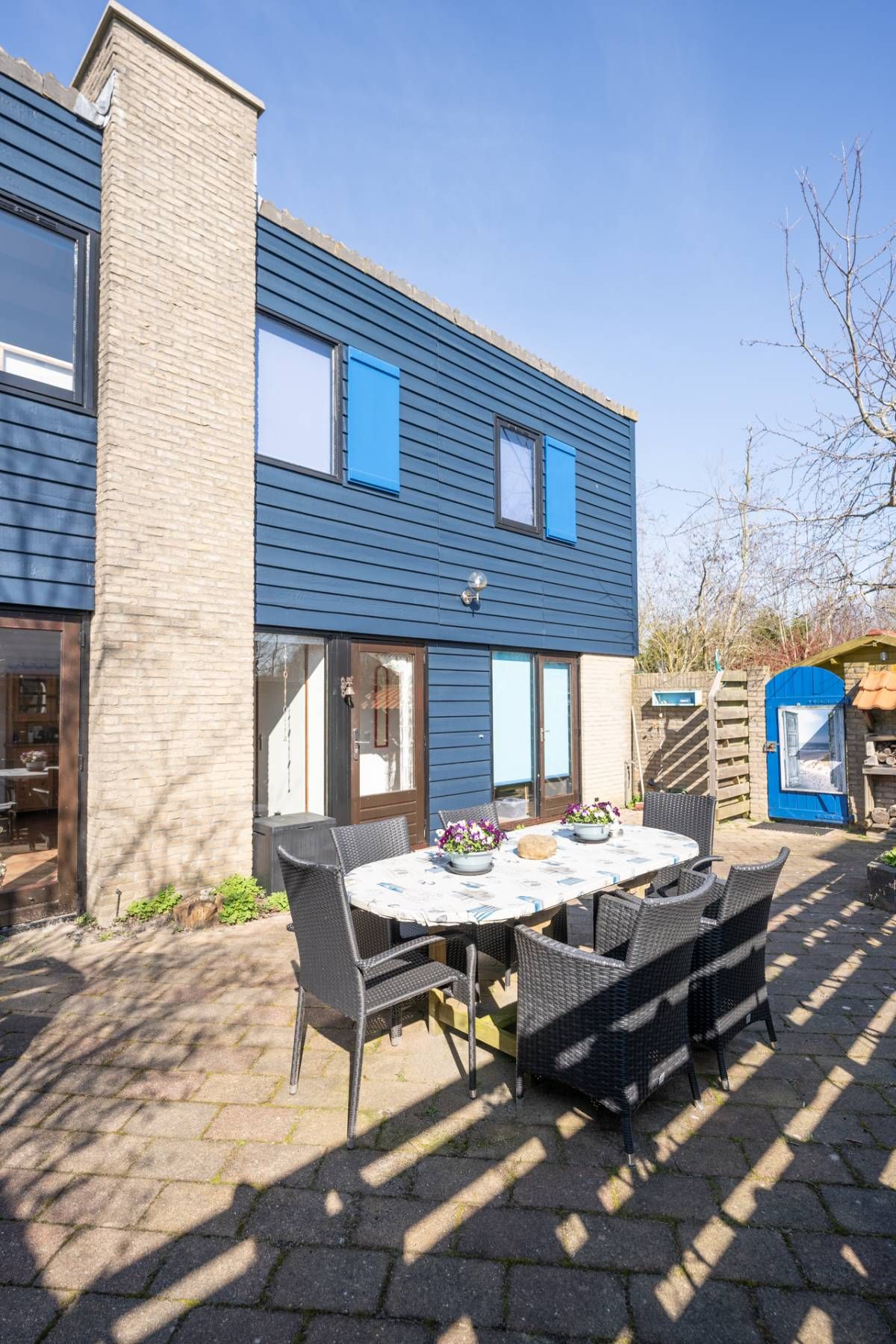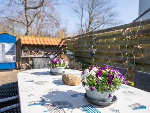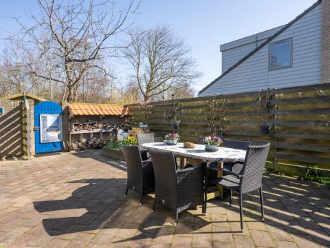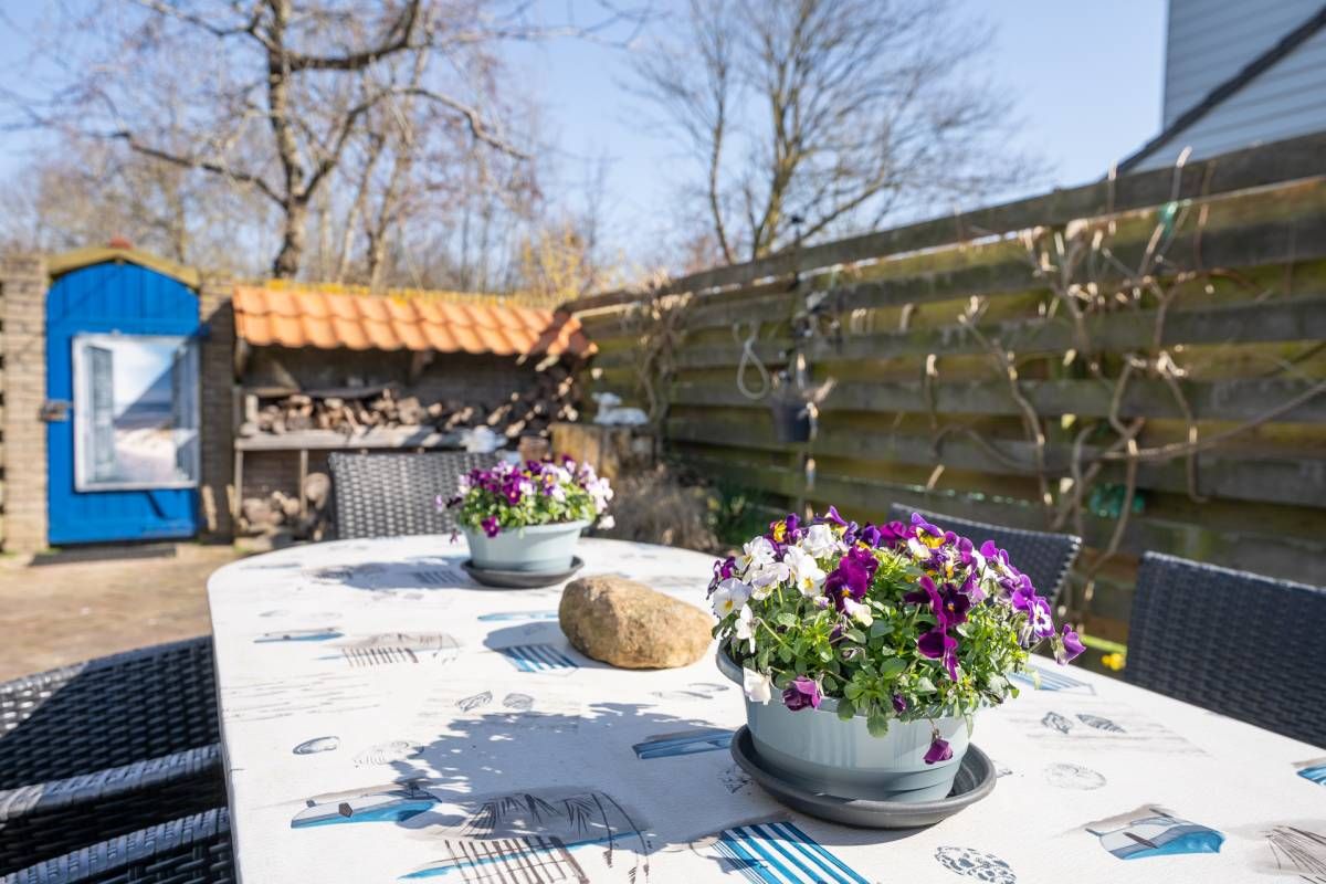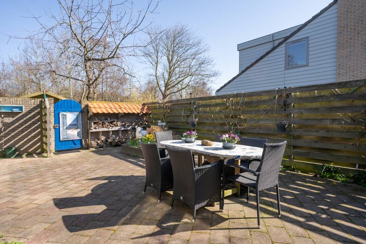 Naast de woning bevindt zich een beschutte patio, volledig omsloten en ingericht met een terras waar u heerlijk kunt zitten en genieten van rust en privacy.