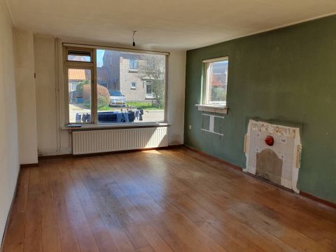 Via de entree betreedt u de hal met meterkast, toiletruimte, trapopgang en praktische trapkast. Vanuit de hal loopt u door naar de woonkamer. De woonkamer is voorzien van houten vloerdelen en heeft een prettige lichtinval dankzij de aanwezige raampartijen. Aansluitend aan de woonkamer bevindt zich de halfopen keuken, welke eenvoudig is uitgevoerd en voorzien van enkele basisapparatuur.