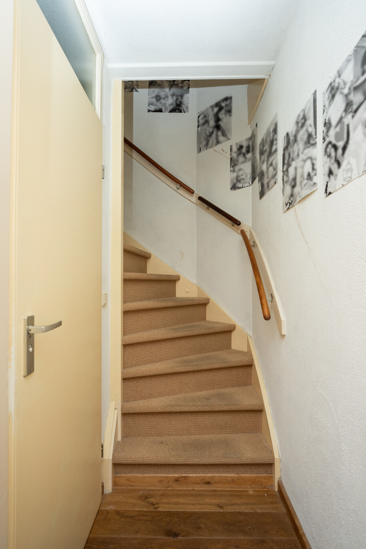 De hal biedt toegang tot de toiletruimte en de trapopgang naar de verdieping.