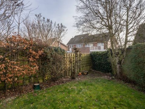 Tuin | Achter de woning ligt een verzorgde en deels betegelde achtertuin, die dankzij de ligging veel zonlicht ontvangt.