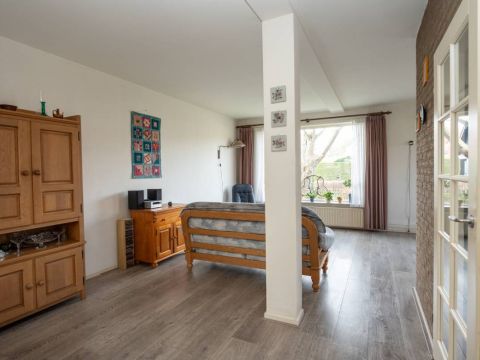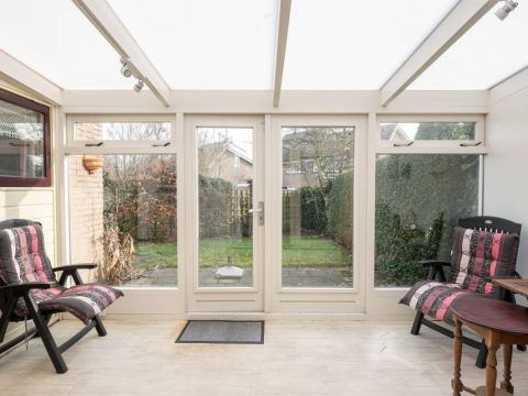 Via de schuifpui heeft u toegang tot de serre, een heerlijke extra leefruimte met veel lichtinval en een deur naar de achtertuin. Een ideale plek om het hele jaar door van binnen en van buiten te genieten.