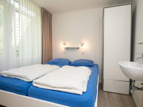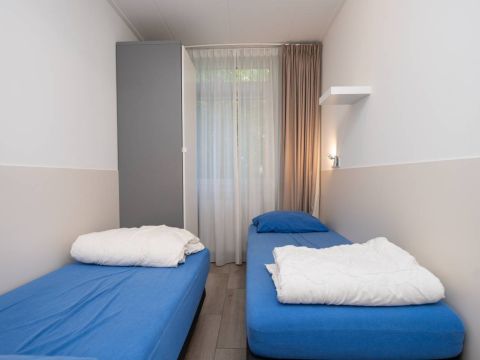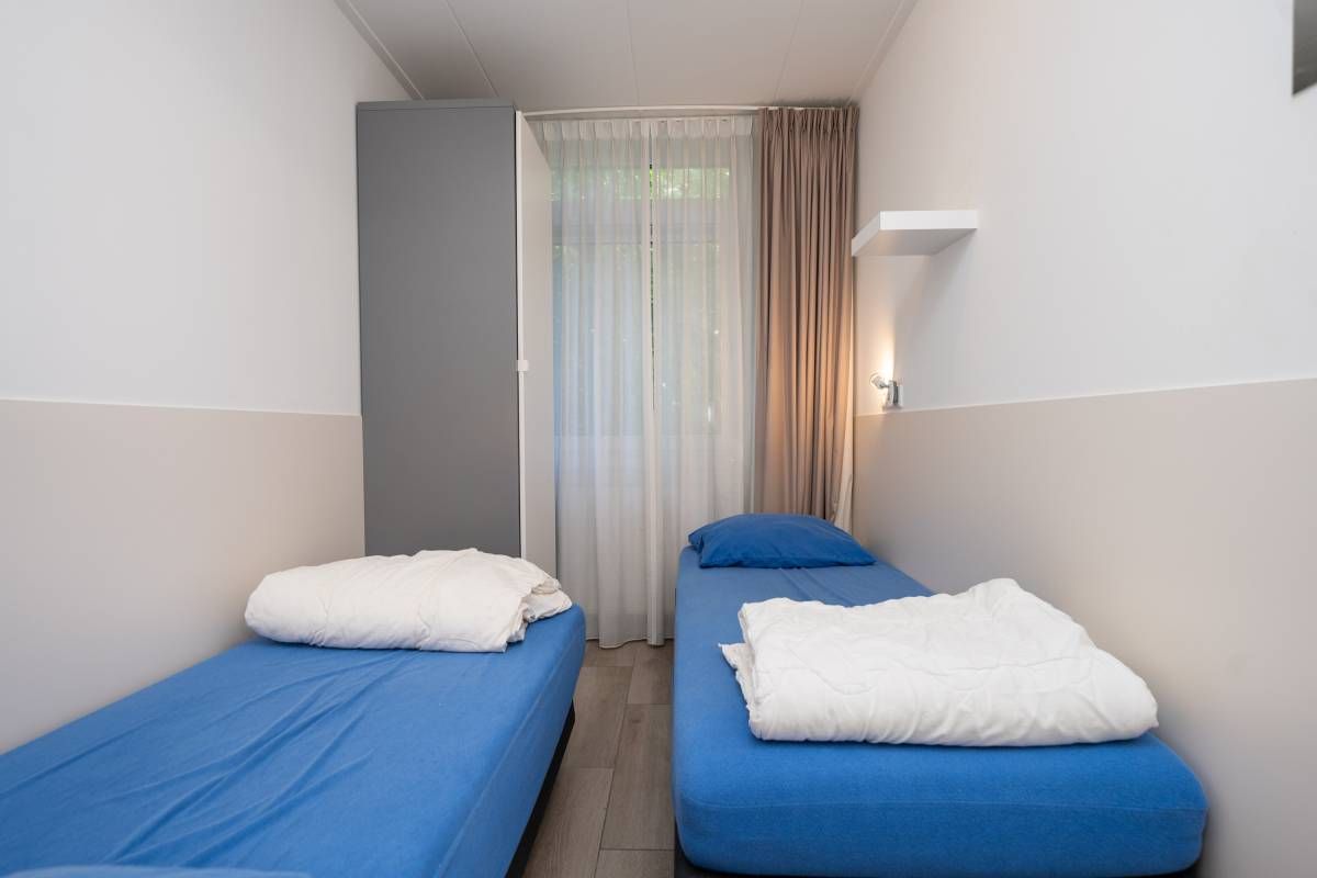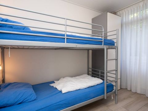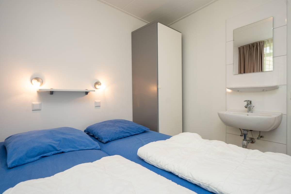 De bungalow beschikt over drie slaapkamers en is ingericht voor zes personen. Ideaal voor gezinnen of stellen die samen willen genieten. De kamers zijn praktisch ingedeeld en voorzien van voldoende kastruimte, waarbij één slaapkamer beschikt over een stapelbed.
