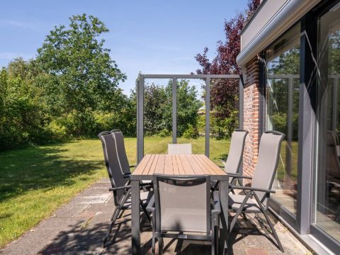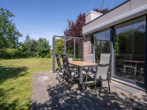 De royale, door groen omsloten tuin biedt veel privacy en is een heerlijke plek om volledig tot rust te komen. Het terras is voorzien van een zonnescherm, waardoor u buiten zowel van de zon als heerlijk in de schaduw kunt genieten.