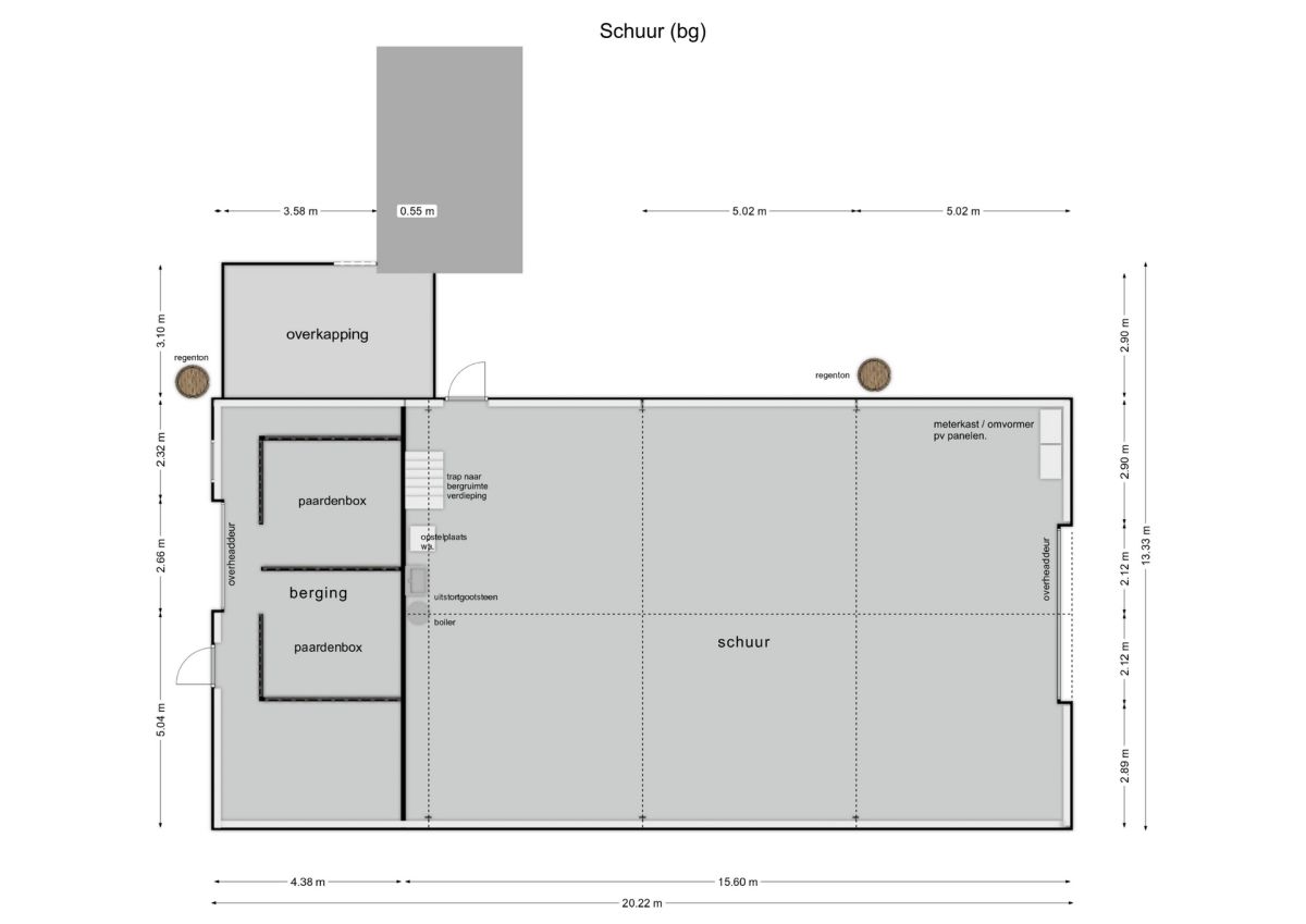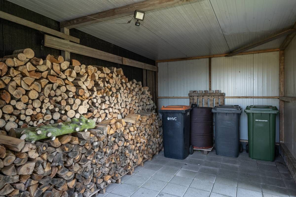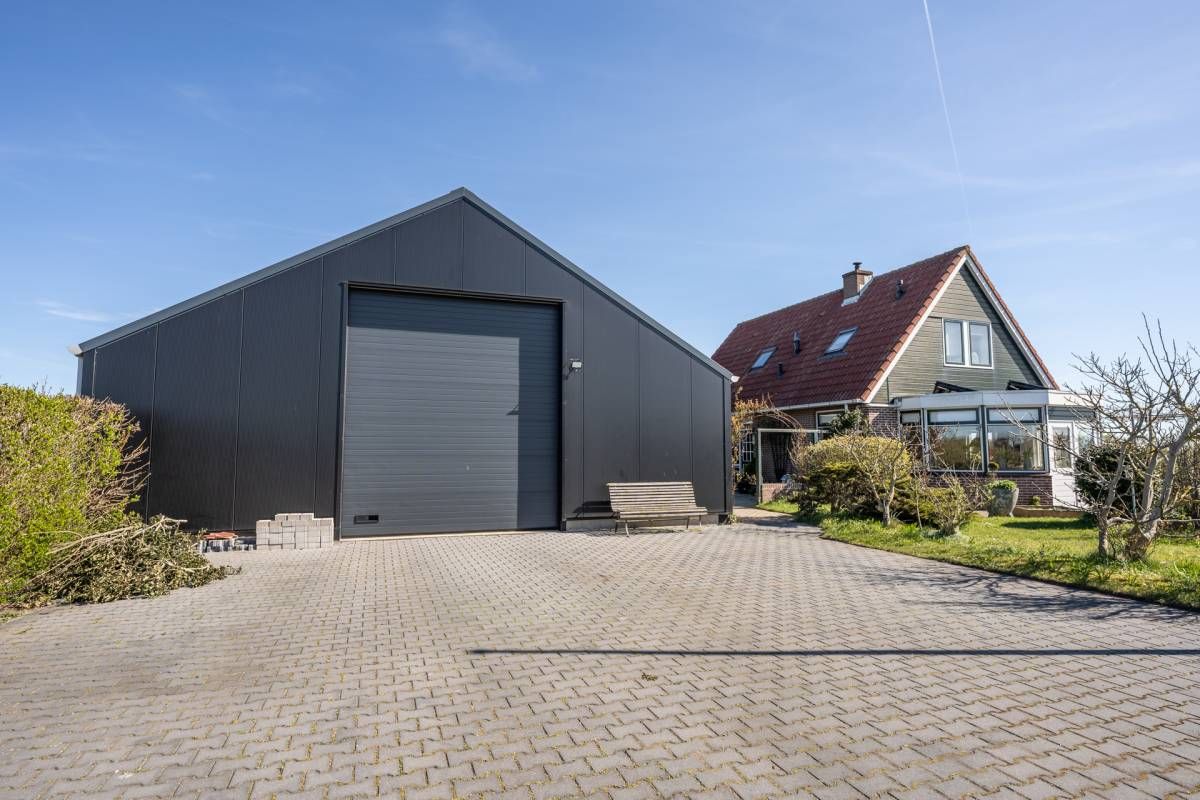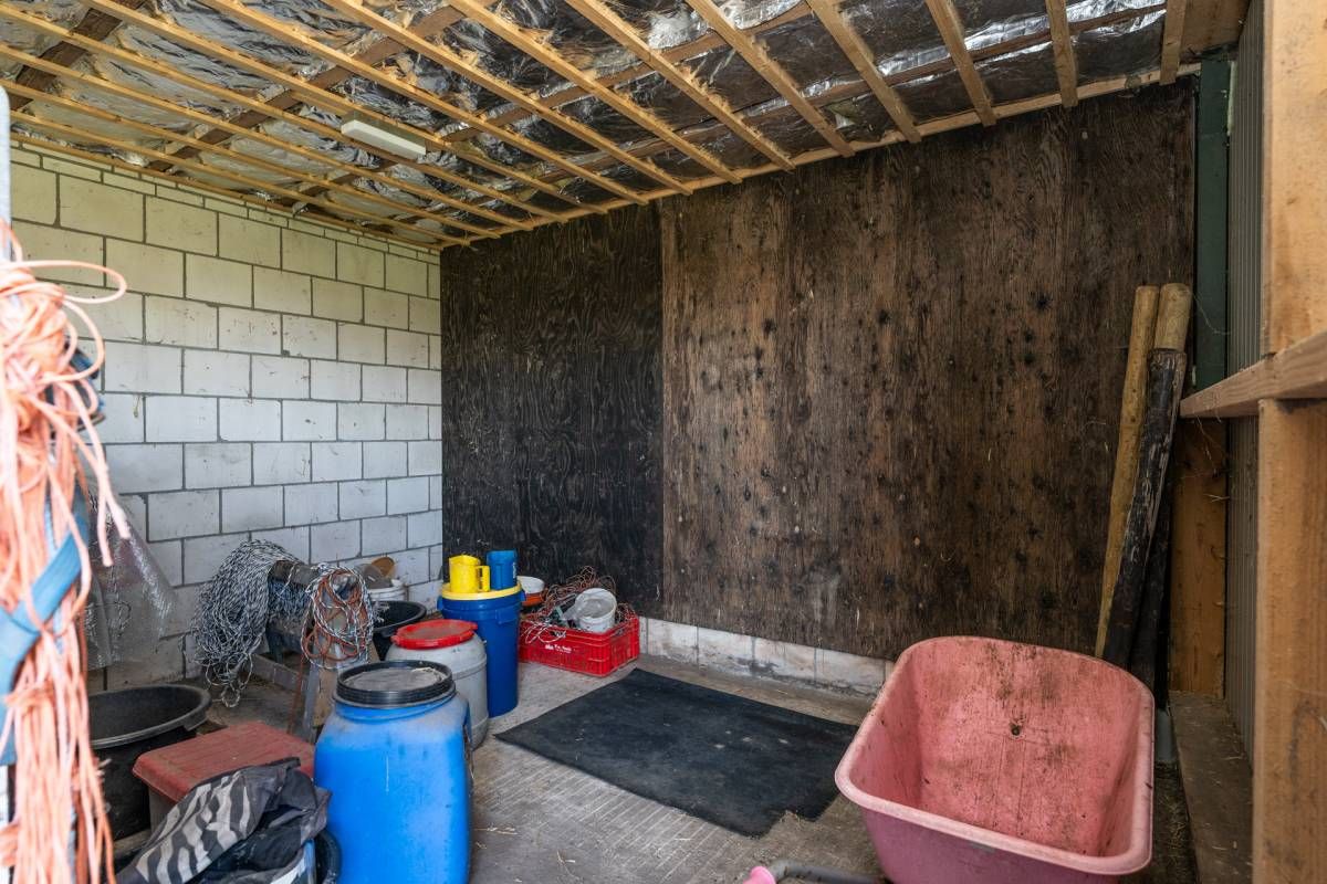 De grote loods van circa 200 m² beschikt over een kantoorruimte en een slaapzolder. Aan de loods grenzen 3 paardenboxen en een overkapping. Voor de loods is volop parkeergelegenheid.