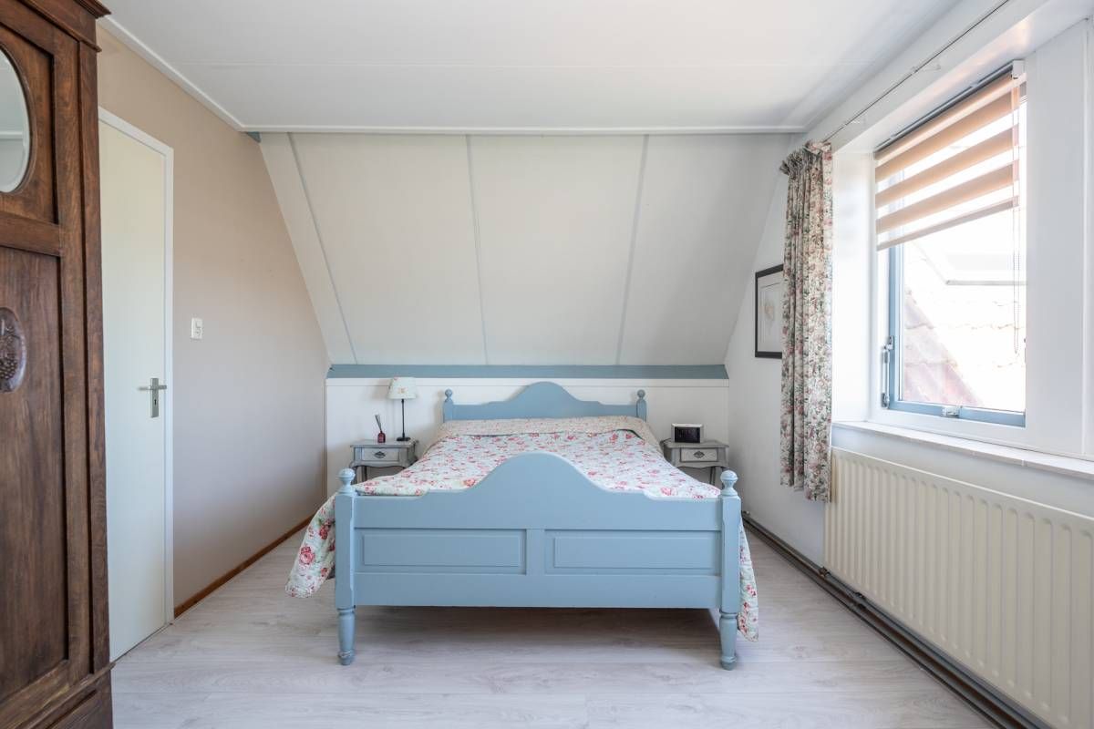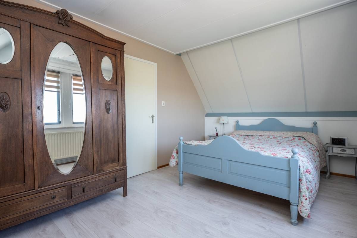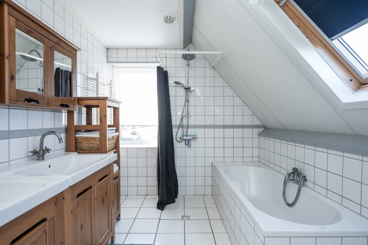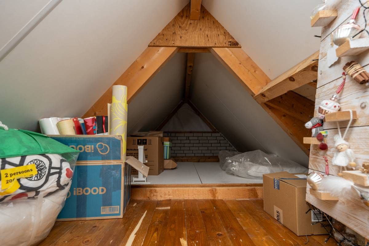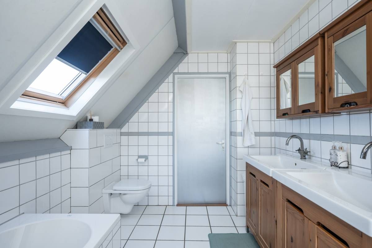 Op de verdieping vind je 3 slaapkamers en een ruime, sfeervolle badkamer met ligbad, aparte douche, dubbele wastafel en toilet. Dankzij de ramen is er prettig daglicht en natuurlijke ventilatie. Via een vlizotrap is de bergzolder bereikbaar.
