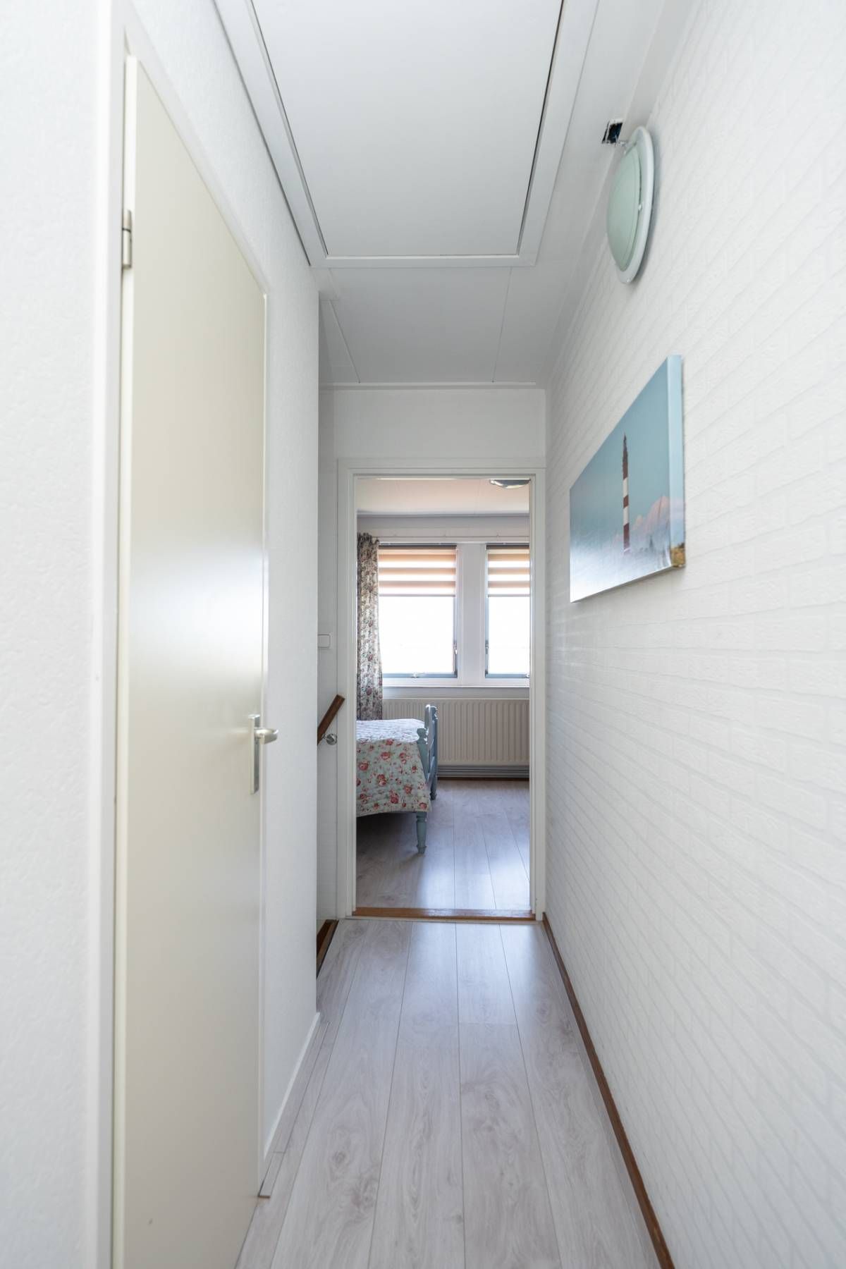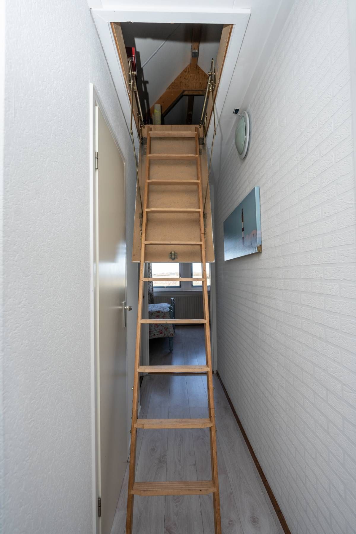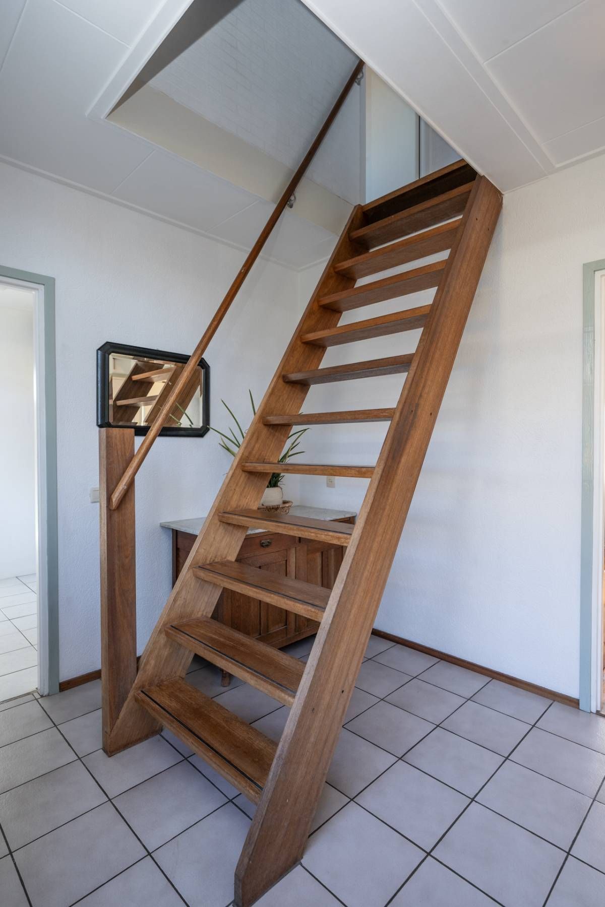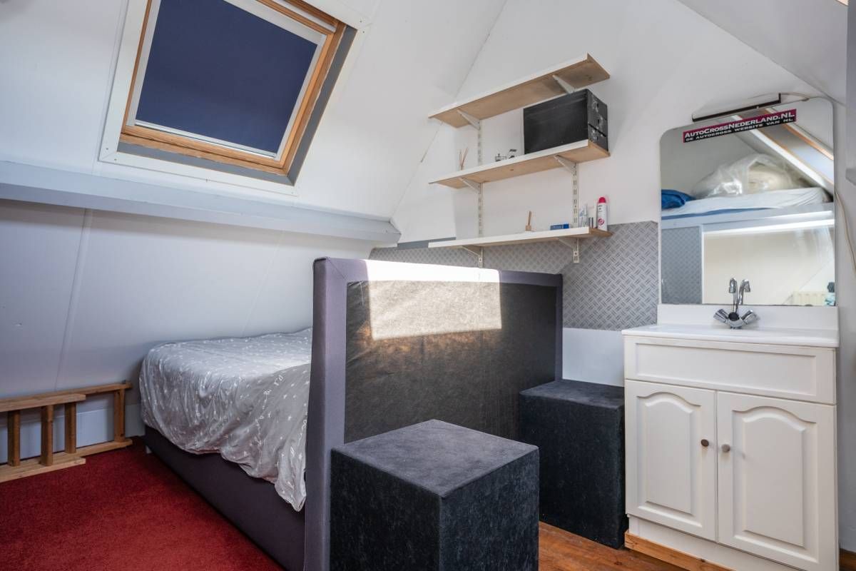 Op de verdieping vind je 3 slaapkamers en een ruime, sfeervolle badkamer met ligbad, aparte douche, dubbele wastafel en toilet. Dankzij de ramen is er prettig daglicht en natuurlijke ventilatie. Via een vlizotrap is de bergzolder bereikbaar.