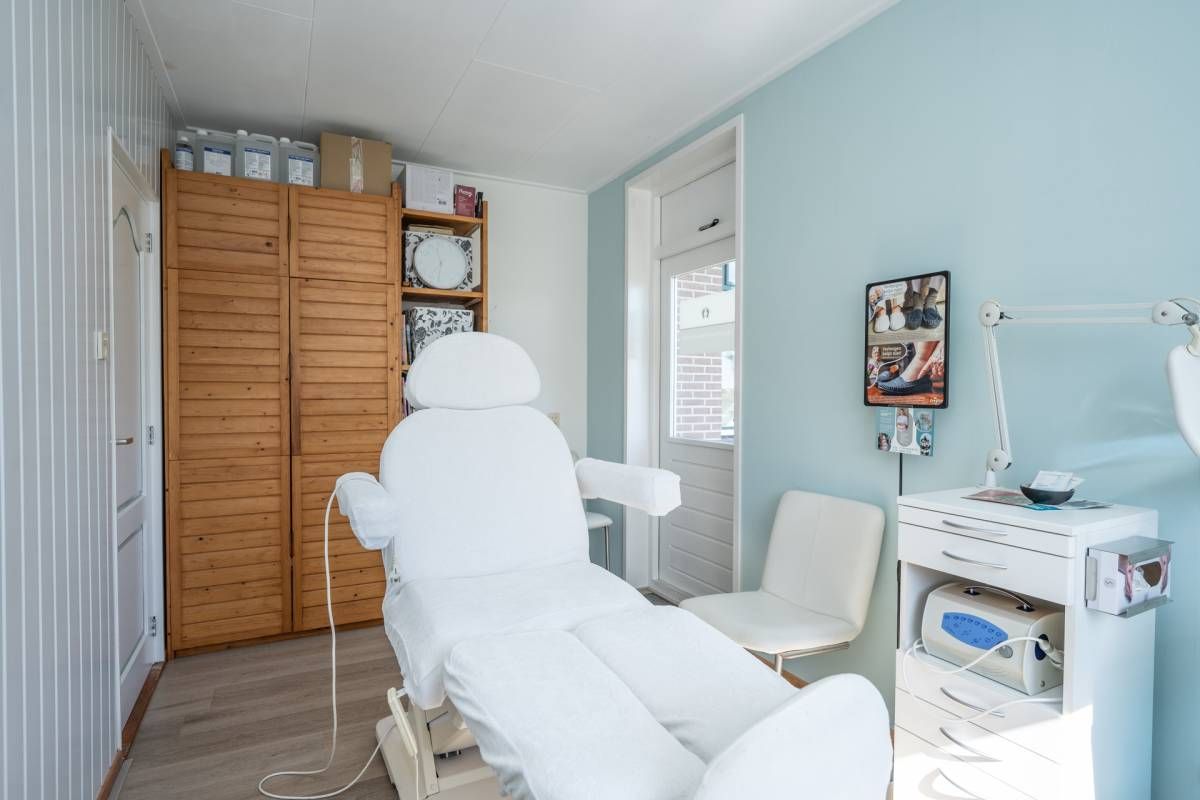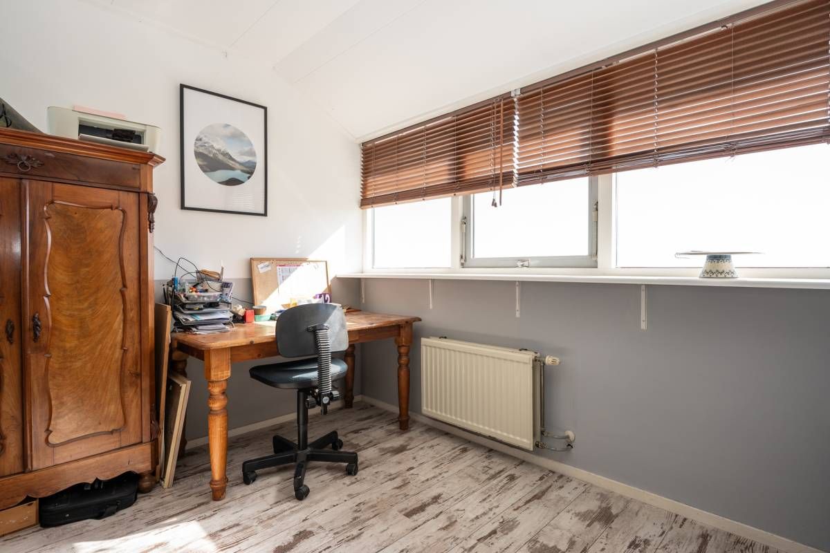 Op de begane grond bevindt zich een extra slaapkamer, momenteel in gebruik als praktijkruimte met een eigen entree, ideaal voor werken aan huis.